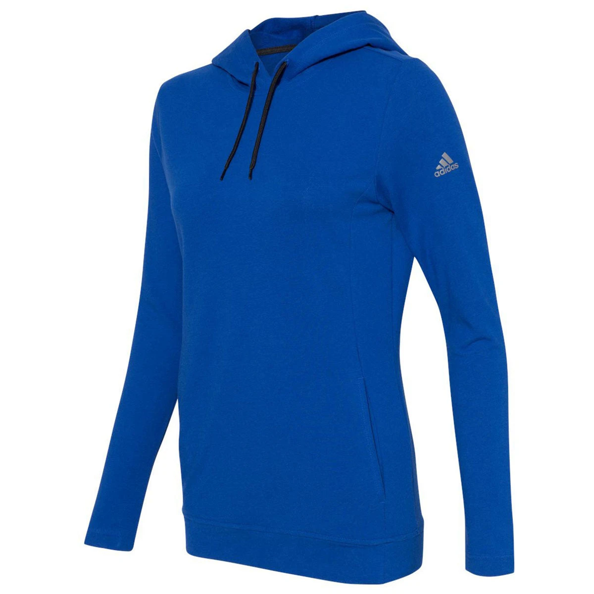 Create a custom must have with the Adidas Women’s Collegiate Royal Lightweight Hooded Sweatshirt. Add the screen print of your choosing to the fitted cotton, elastane French terry sweatshirt that is lightweight and allows for range of movement. Perfect as part of athleisure apparel or warm-up uniforms, this hooded sweatshirt has two front pockets and 3 stripe contrast detail for a bit of flair. Choose this hooded sweatshirt with a custom logo to use as employee apparel or gifts for nearly any occasion. The drawstring hood makes for a great fit and protection against the weather on days when Mother Nature is being odd.