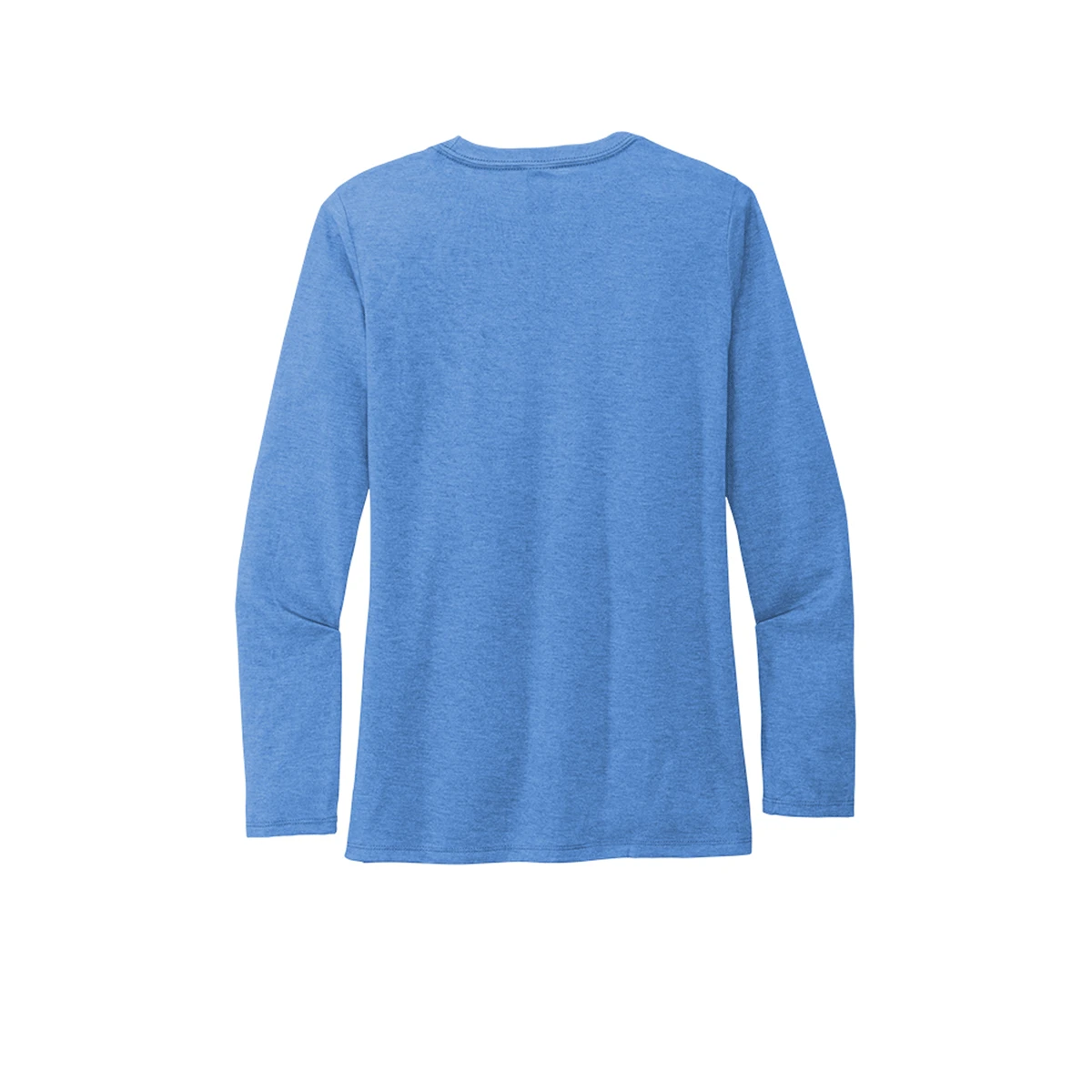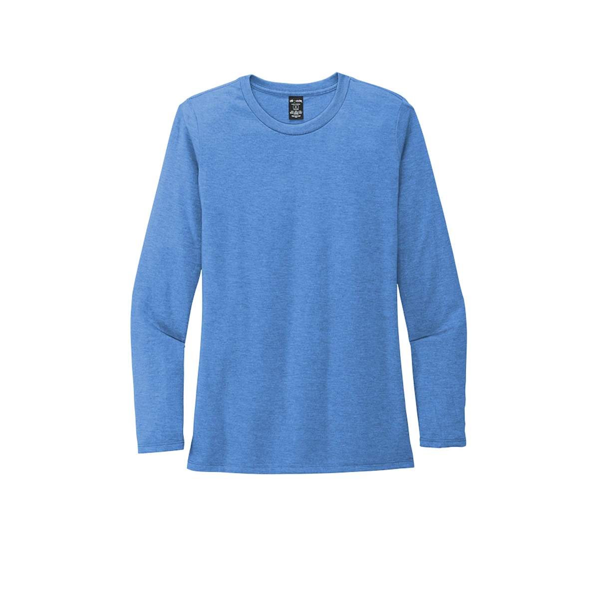 Add screen print to the Allmade Women’s Azure Blue Tri-Blend Long Sleeve Tee for a look that everyone can enjoy. Your custom logo will appear on this piece of sustainable clothing that is durable and fashion friendly. Add a company logo to use as employee gifts or uniform pieces in some industries. Easy to wear alone or layer when the weather is cooler, this long sleeve tee should be welcomed into every wardrobe. Recycled apparel is not only durable, but fashion forward while saving the earth. Each tee uses material the equivalent of up to six recycled plastic bottles.