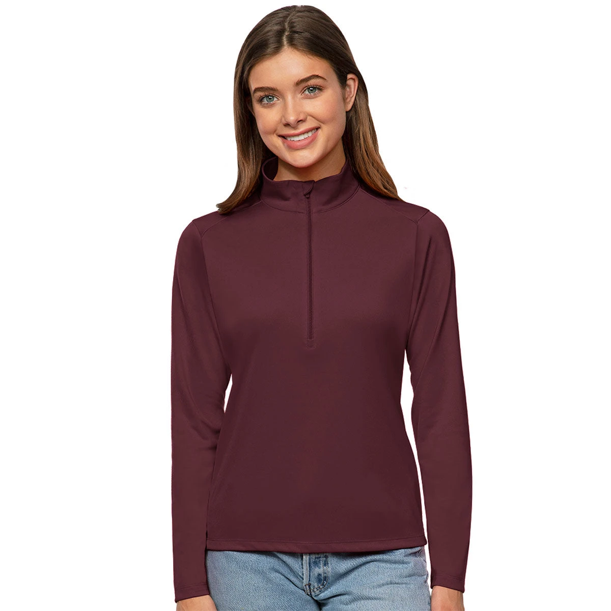 The custom logo Antigua Women’s Maroon Tribute 1/2 Zip Pullover will accommodate your embroidery company logo perfectly. Add your brand name to the pullover and hand it out as an employee welcome gift.