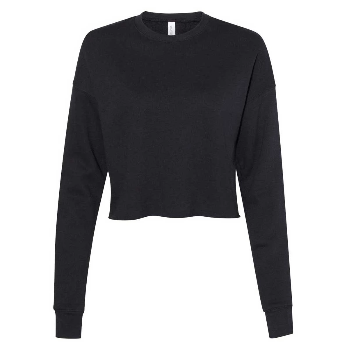 Look and feel sexy in a custom BELLA + CANVAS Women’s Black Cropped Crew Fleece. Your custom logo will stand out on this Airlume combed and ring-spun cotton and poly fleece that can easily be screen printed. The dropped shoulder and raw hem add an edge to this fleece that could serve as a custom gift for those who enjoy time at the gym or used as employee apparel in certain settings. Great to wear at home or out running errands with friend, this soft fleece is more about style and comfort than warmth. Wear layered with a tank or alone as you want.