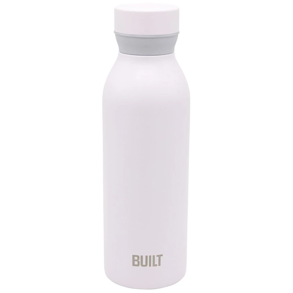 The Built White 18 oz Cascade Water Bottle is crafted with 18/8 double-wall stainless steel construction. Features a threaded lid that easily opens and closes and creates a leak-proof vacuum-seal to prevent spilling. A silicone grip on the lid provides a comfortable hold as well as helps to open and close the lid more easily. The Cascade bottle fits in a standard size cup holder.