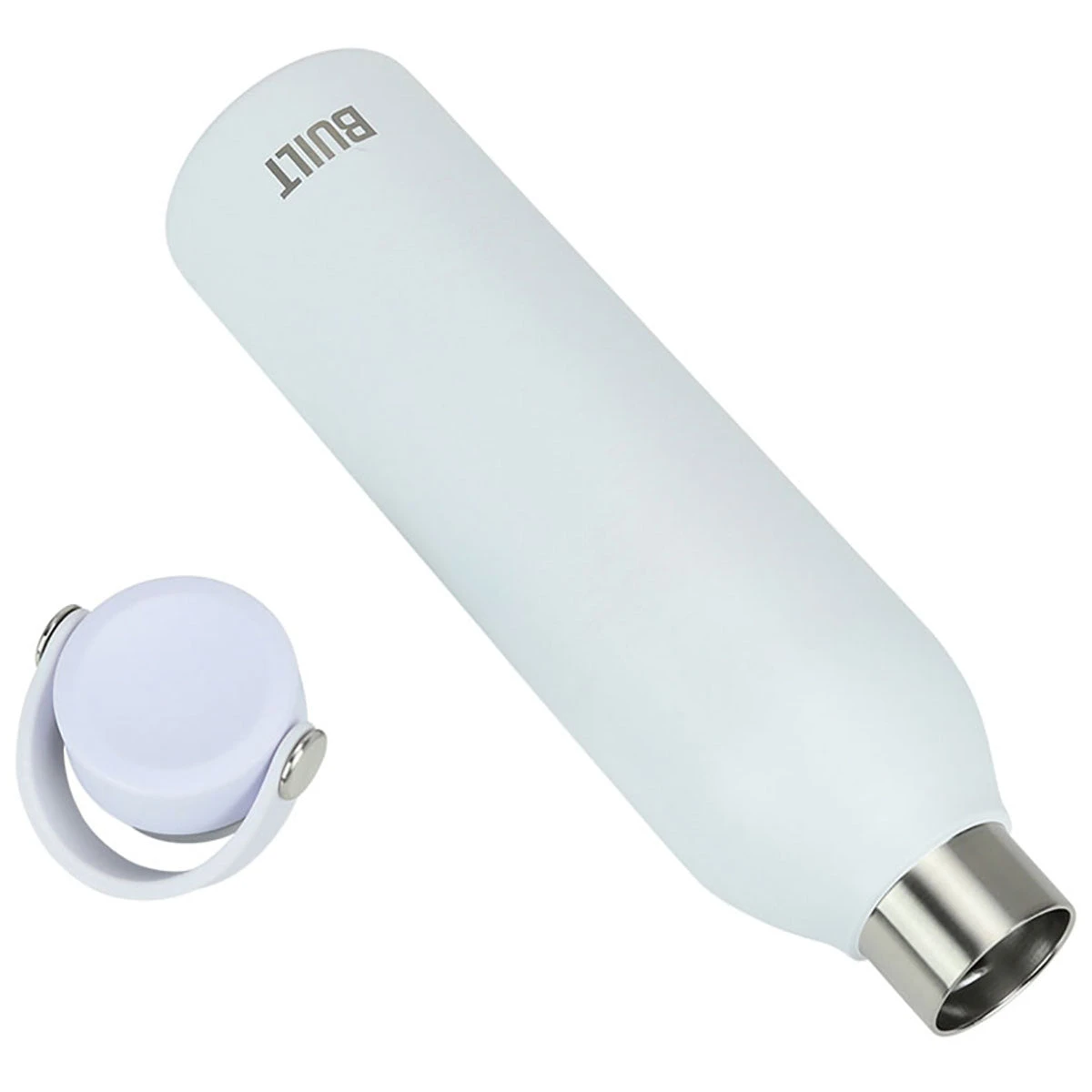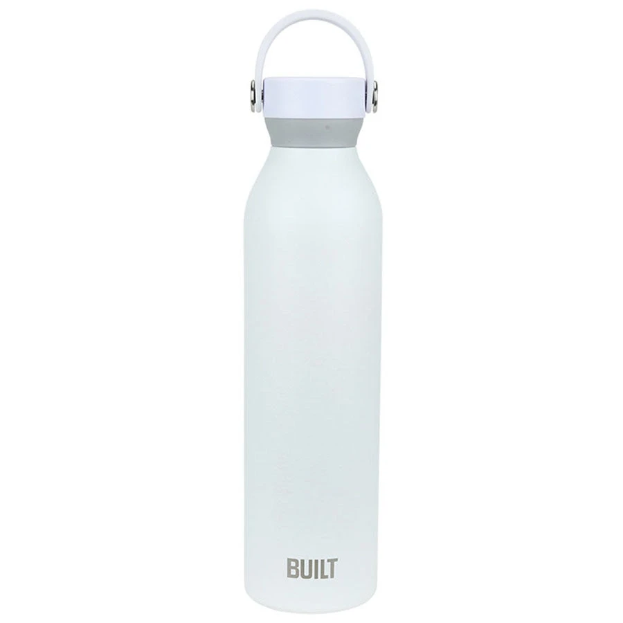 This Built White 24 oz Cascade Bottle with Handle Lid makes it easy to carry your favorite beverage and stay hydrated. 18/8 double-wall stainless steel, vacuum-sealed construction maintains the optimal temperature of cold beverages. Features a silicone grip for comfortable hold. Threaded lid easily opens and closes for the leak proof seal, 24-ounce capacity fits in a standard sized cup holder; dishwasher safe.