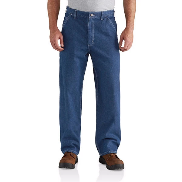 Highly durable denim used to design the company logoed Carhartt Men’s Darkstone Loose Original Fit Work Dungaree Pants resists the types of rips and tears that relegate other styles of work pants to the rag pile. One-hundred percent cotton washed denim stands out at construction sites. Take advantage of the attention by adding your corporate logo on the large imprint area. Cut to offer maximum comfort for a job that requires you to work from sunrise to sunset, the work pants include heavy hauling reinforced back pockets that secure frequently used tools. The straight leg opening fits over work boots to give you an easy way to remove the pants when the temperature climbs.