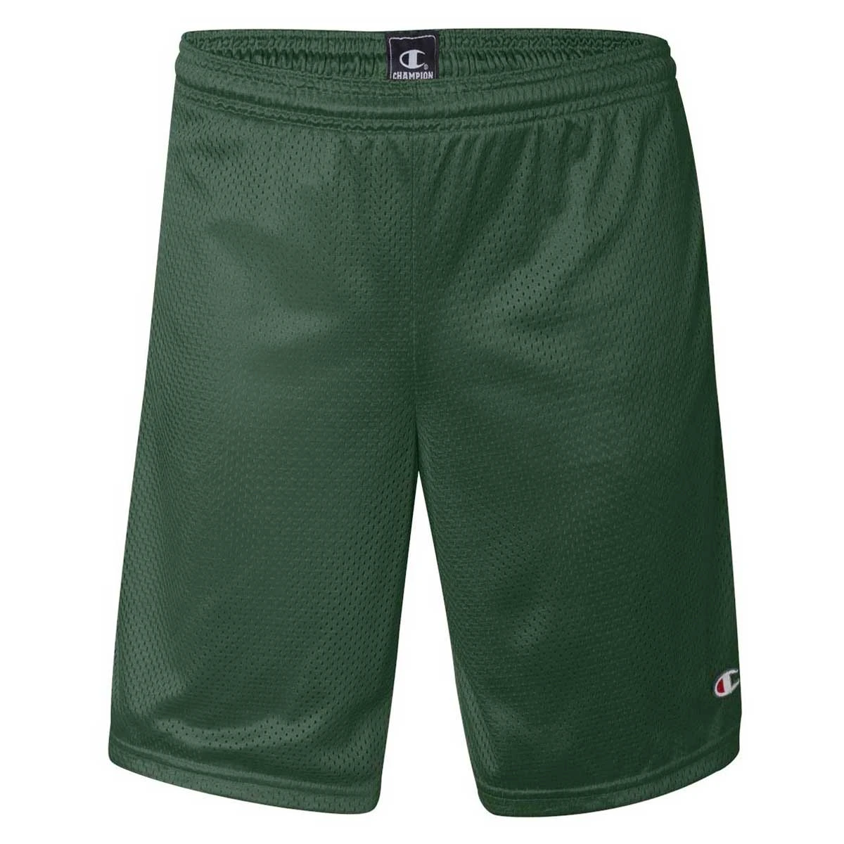 Get your sweat on with custom embroidery Champion Men’s Athletic Dark Green Polyester Mesh 9″ Shorts with Pockets. Ideal as part of athletic uniforms, your custom logo from a school or organization will stand out. The best part of these shorts are the on-seam pockets that allow you to keep your necessary items close at hand. Made of a polyester mesh with tricot liner, the elastic waistband with internal drawcord creates a perfect athletic fit. Add your design in embroidery to give as custom gifts to those who enjoy sports, running, or working out in general. Great for competitive runners or those who jog solely for fun. These shorts are also a good option for the basketball players in your life.