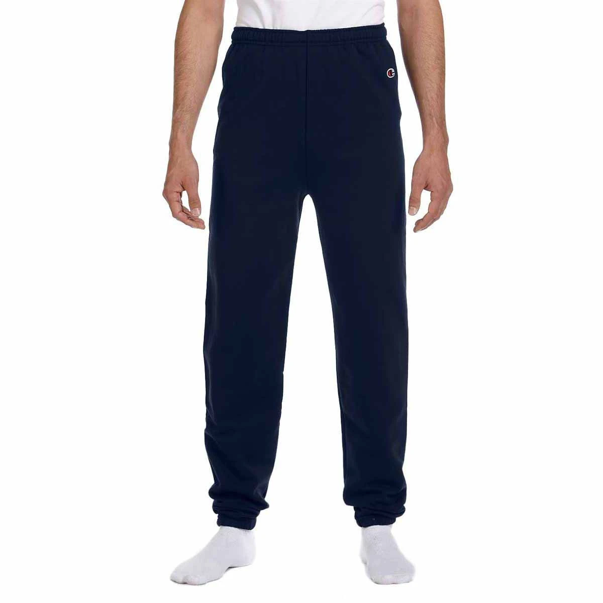 Designed for all seasons, this Champion Men’s Navy Eco 9-Ounce Fleece Pant contains a half cotton and half polyester construction. The blended fabric provides long lasting durability, as well as supreme comfort in all types of weather. Champion helps the environment by using recycled polyester extracted from plastic bottles. You never have to worry about flexibility, as this fleece pant includes an elastic waistband and inside drawcord. This embroidered apparel comes with the iconic Champion “C” attached at the left hip. On the right side, Champion provides you with an open area to add a custom logo.