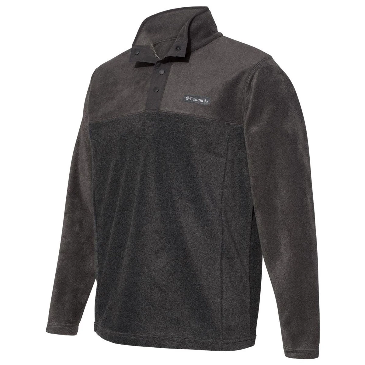 Look and feel great in a custom logo Columbia Men’s Charcoal Heather/Shark Steens Mountain Half-Snap Pullover. Made of 100% polyester MTR filament fleece, this half-snap is warm and cozy on those chilly spring, fall, and winter days. Carrying a medium weight for ease of wear and warmth, the nylon placket has a four snap closure that can be worn open or closed for an easy fit. Perfect for layering, this pullover can be embroidered with your corporate logo to sale at events or trade shows. Use as daily wear, employee gifts or even employee apparel options for those who work outdoors. Place an order today to have these ready for whatever your needs may be.