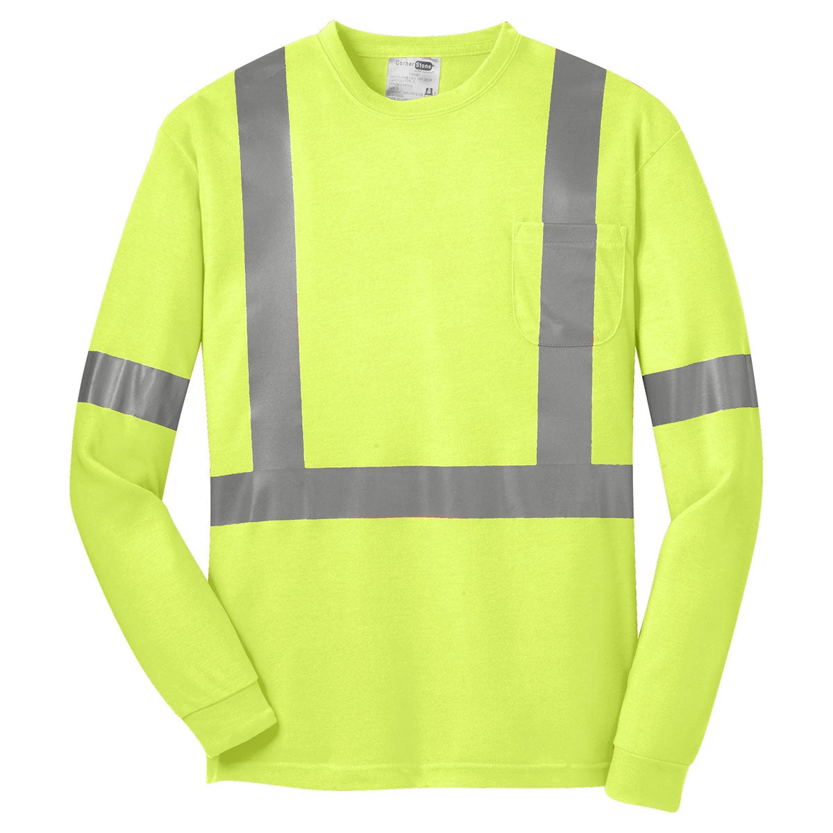The CornerStone Safety Yellow ANSI 107 Class 2 Long Sleeve Safety T-Shirt takes most of the danger out working near heavily congested roads and highways under the dark sky. CornerStone makes the t-shirt highly visible by offering two safety colors, as well as two-inch wide reflective taping on both the front and back of the shirt. Motorists can spot construction workers wearing the visible workwear dozens of yards before entering a construction zone. One hundred percent moisture wicking polyester keeps the skin cool on even the warmest summer nights. Rib knit cuffs prevent the t-shirt from expanding during construction jobs that take place on very windy days.