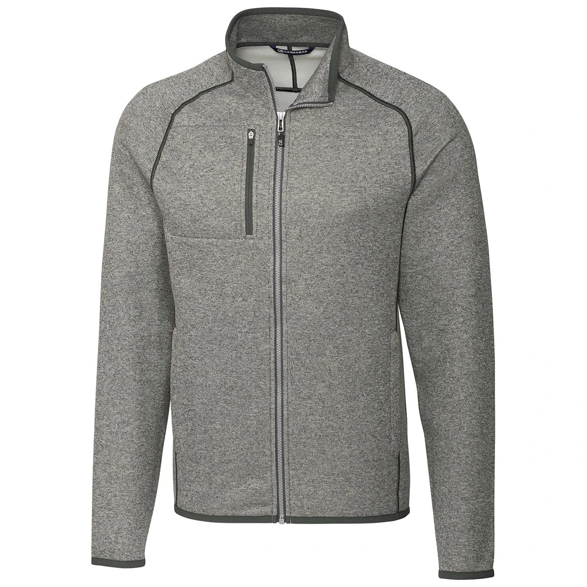 The Cutter & Buck Men’s Polished Heather Tall Mainsail Jacket is a stylish outerwear product that you can add your company logo to in professional embroidery. Adding your corporate logo turns this warm and cozy product into an advertising item that’s sure to work wonders for your company. This corporate apparel option is available in classic colors with features such as 100% polyester material, brushed fleece interior, mock neck full zip, tonal top stitching, zip chest pocket, and CB logo at back yoke.