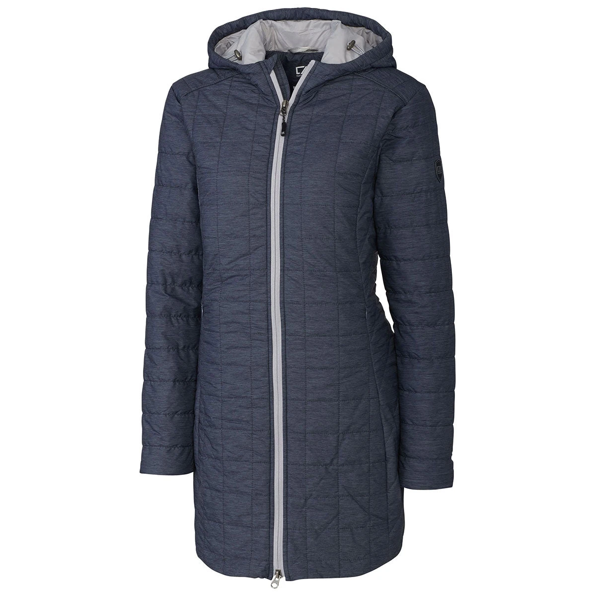 The Cutter & Buck Women’s Anthracite Melange Rainier Long Jacket offers warmth and style in one lovely outerwear item. And, when you add a company logo to the front of the jacket, you have a stylish product that works advertising wonders at the same time. Choose from classic colors and enjoy a wide array of fantastic features including wind and water-resistant capabilities, full zippered front, square pattern quilting, mock neck with attached hood, zippered front pockets, and fully lined interior. Buy this jacket as corporate apparel for your hardworking team at the office. With a product this good, it’s sure to be appreciated and get a lot of wear.