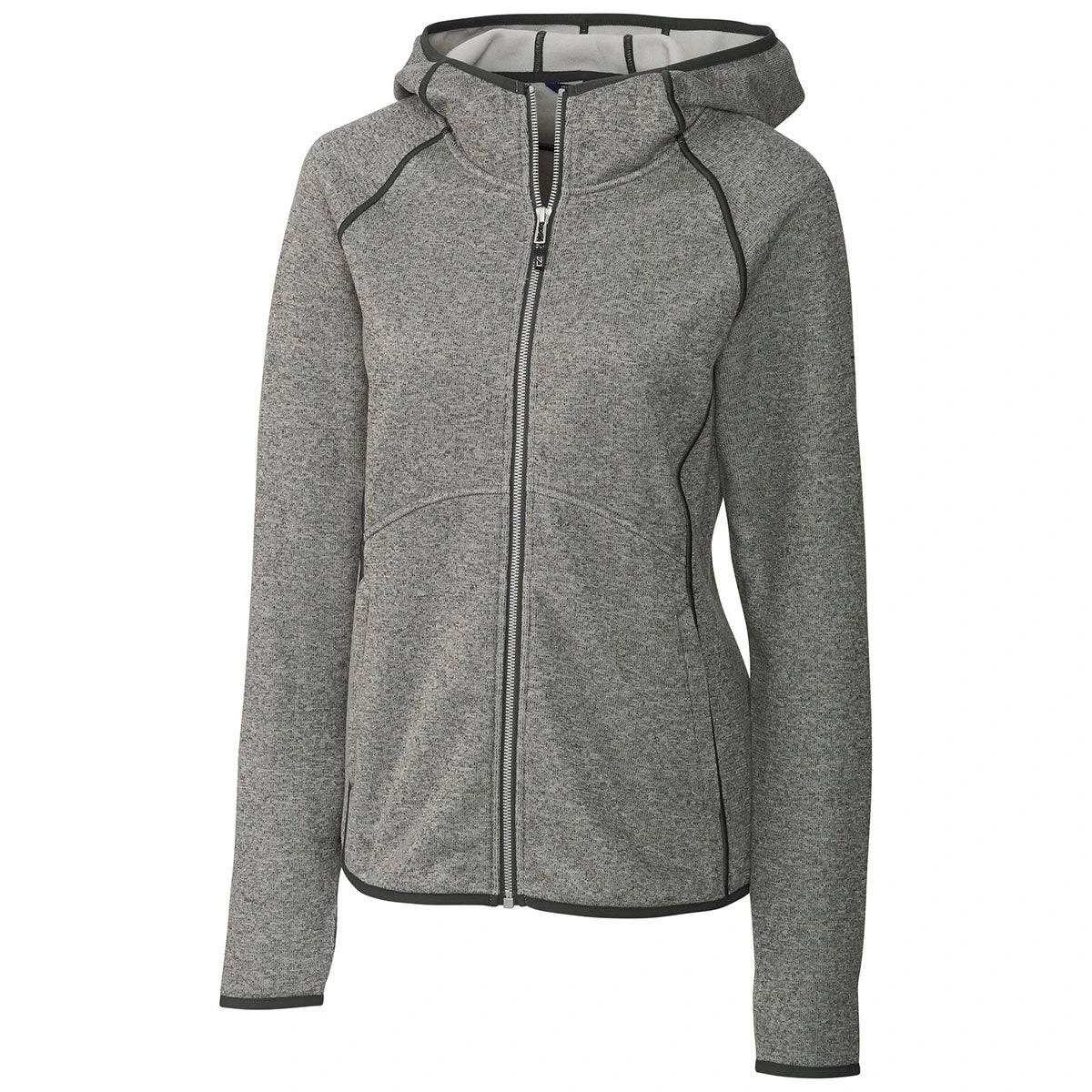 Cutter & Buck Women’s Mainsail Sweater-Knit Full Zip Jacket with a custom logo is an upscale look with a little edge. The sleek long sleeve heathered design is both gorgeous and functional. Imagine your logo emblazoned on this jacket while hitting the slopes, boating with friends, or jumping on your motorcycle to embrace the open road. Place an order today for this sweater fleece.