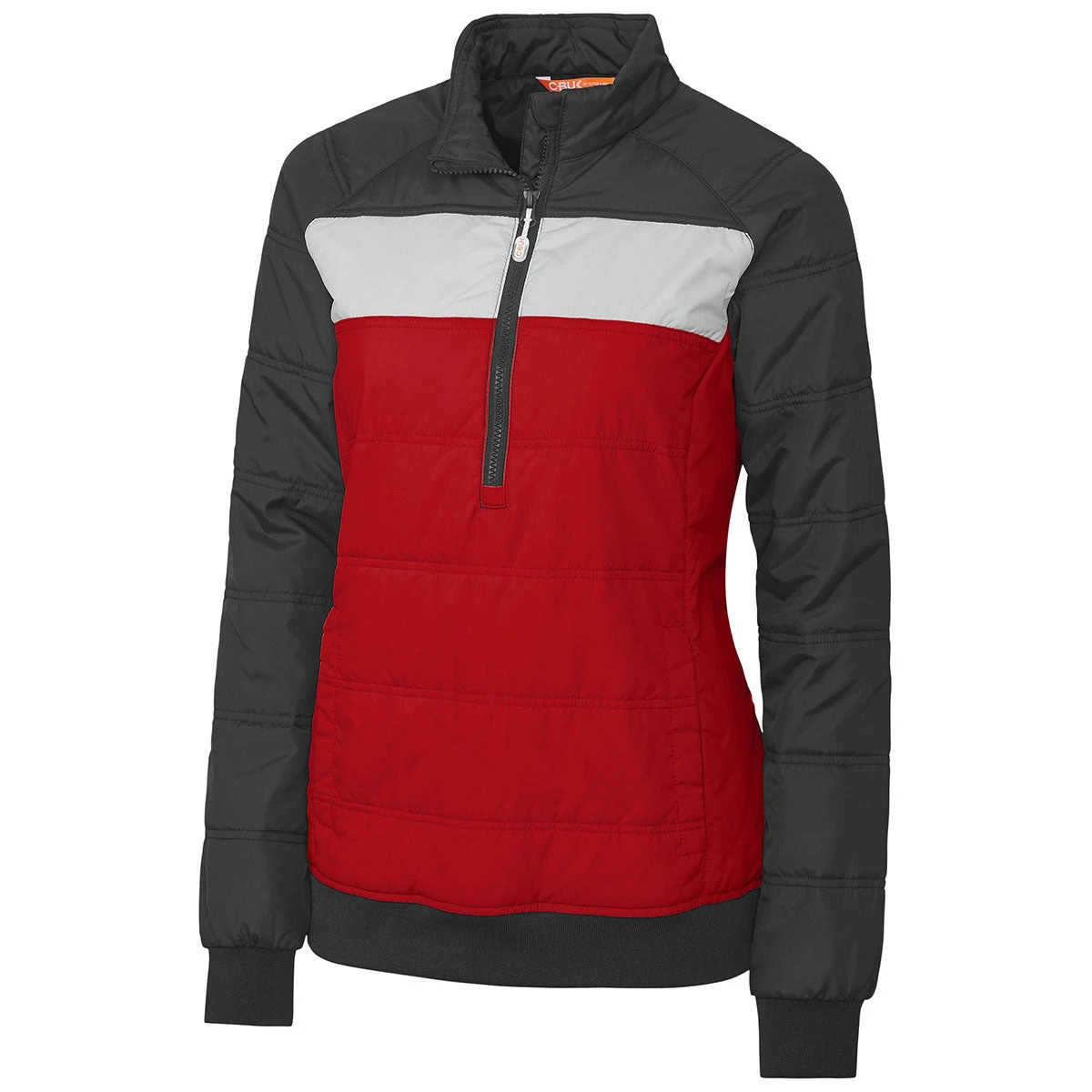 The Cutter & Buck Women’s Red Thaw Insulated Packable Pullover offers comfort and style that can easily be packed away for travel. Add your custom logo to the pullover and choose from classic colors to select a color tone that works best with your logo. Product features include a poplin insulated fabric, wind resistant design, colorblock style, half zip front, front pockets, and rib cuffs and hem. Purchase this product, add your logo, and hand it out as gifts for employee apparel options and at corporate events.