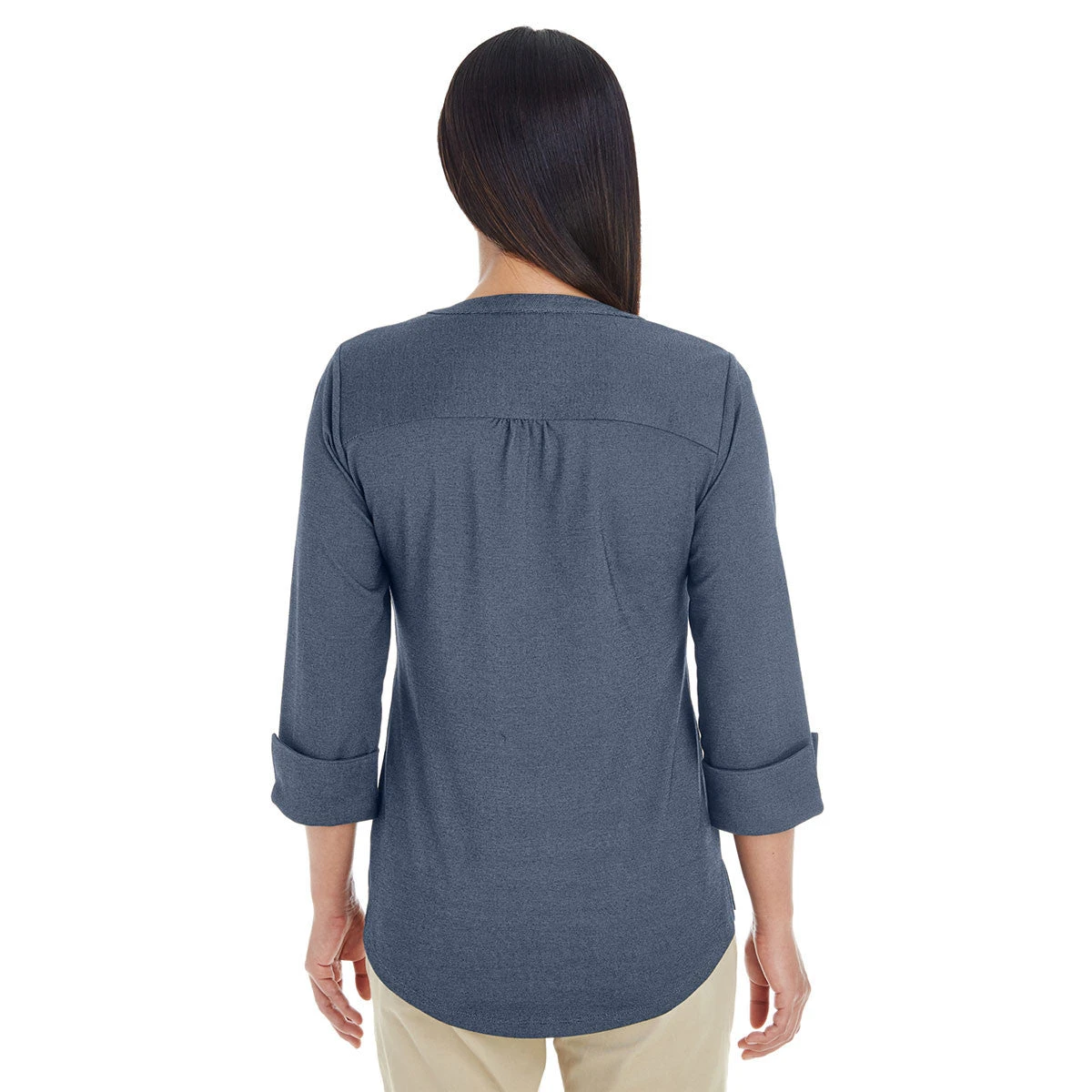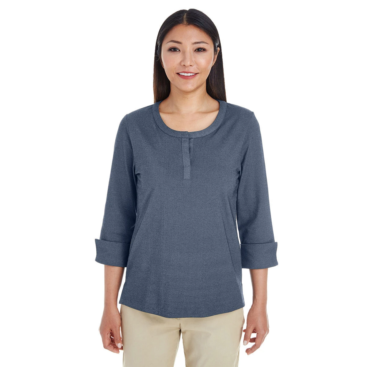 Devon & Jones Women’s Navy Heather Central Cotton Blend Melange Knit Top