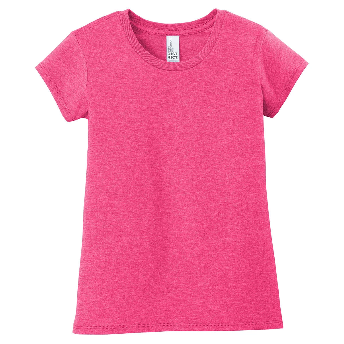 Order the screen printed District Girl’s Fuchsia Frost Very Important Tee for the members of your corporate team. By giving away the sleek girls tee, you show that the company cares about the employee families. The super smooth fabric delivers supreme comfort throughout the day for active girls that like to participate in recreational activities. The tee doubles as standalone company apparel, as well as the first layer for an outfit that warms the body during winter. Add a custom logo to broaden the base of potential customers in the community. Give away the all purpose tee at civic events and industry trade shows.
