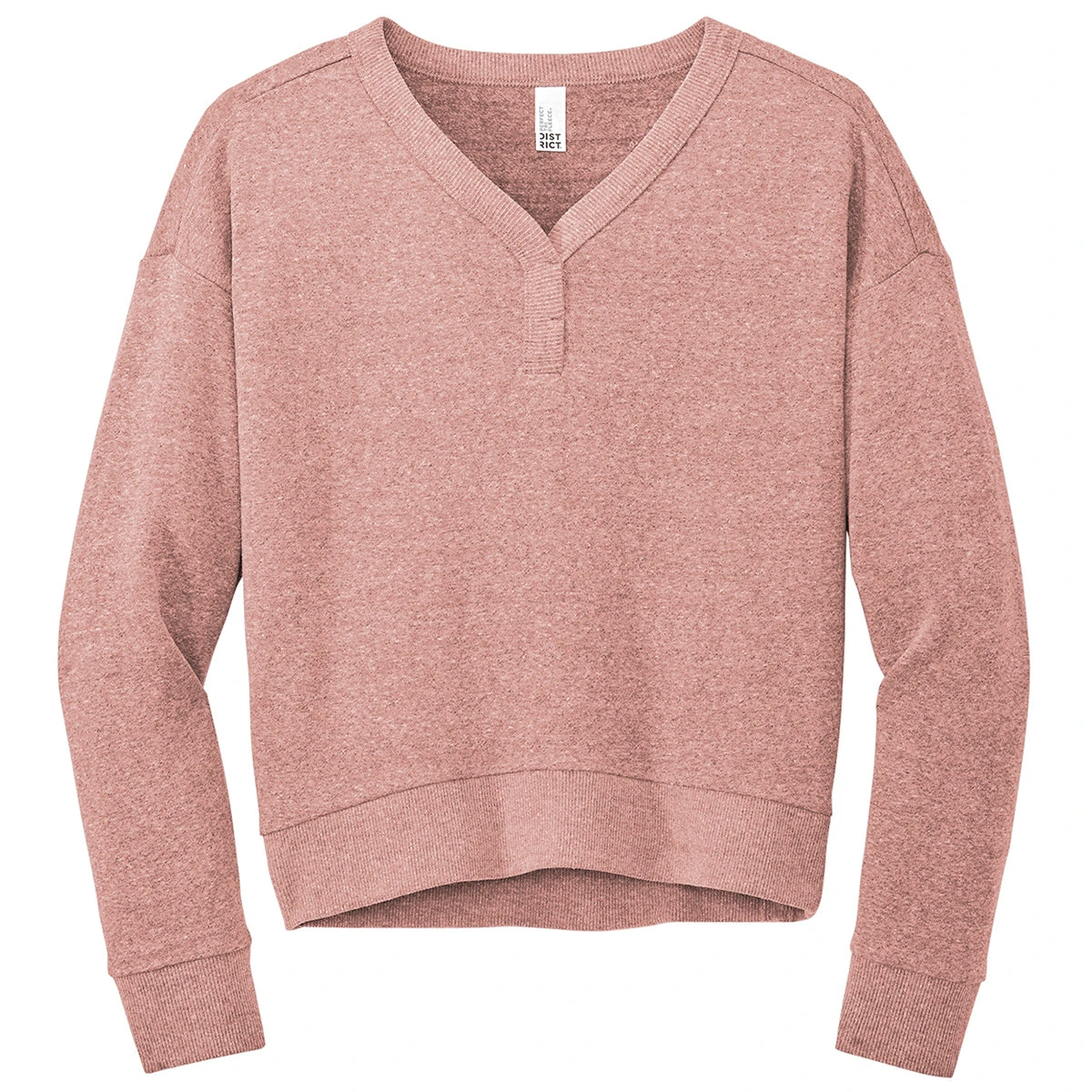The company logo District Women’s Blush Frost Perfect Tri Fleece V-Neck Sweatshirt offers cozy comfort for your gift recipient. Add your company name to this must-have sweatshirt and hand it out as a new employee welcome gift for your newest team members.