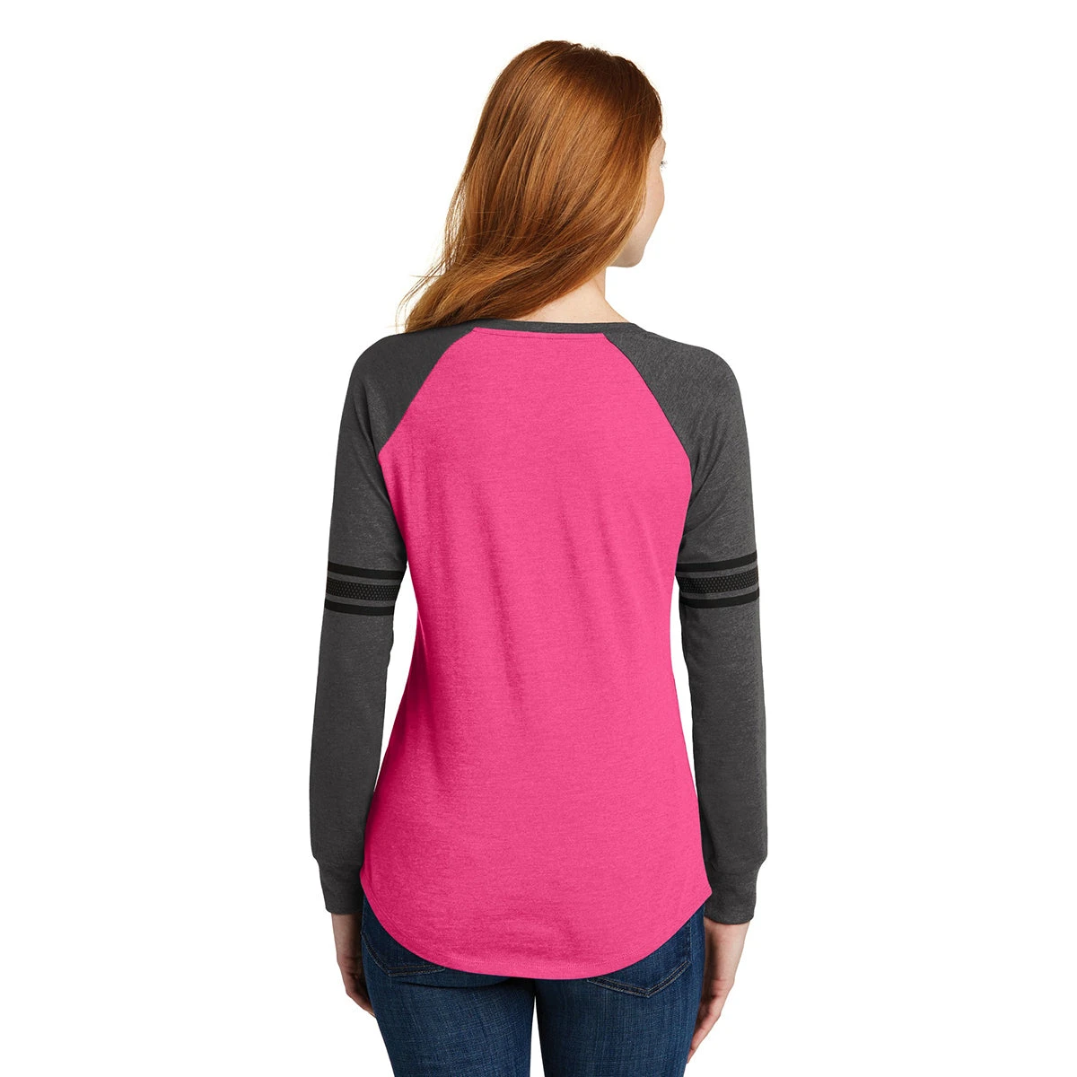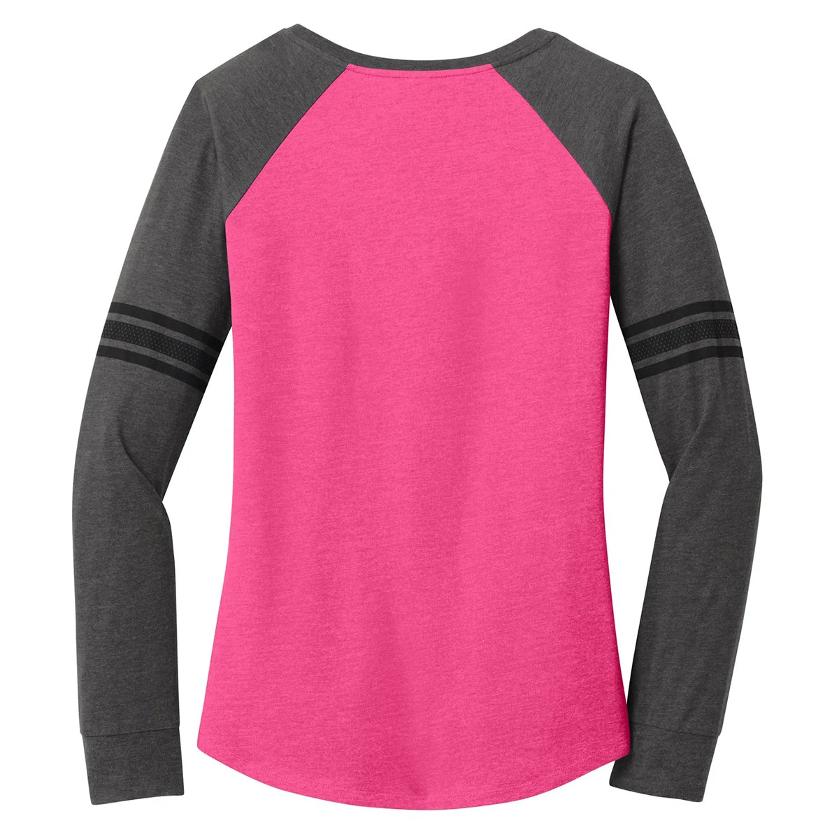 Hit a fashion home run by wearing the embroidered District Women’s Heathered Dark Fuchsia/Heathered Charcoal/Black Game Long Sleeve V-Neck Tee. Put on the crossover v-neck shirt as an only layer for a softball game or as the first layer to protect you against cold temperatures. The elegant curved hem and solid print stripes on the sleeves separate the long sleeve tee from the corporate apparel competition. Blended ring spun combed cotton and rugged polyester ensures you enjoy the stylish tee for years to come. Add a custom logo on the large imprint area to get the word out about your company in the community.