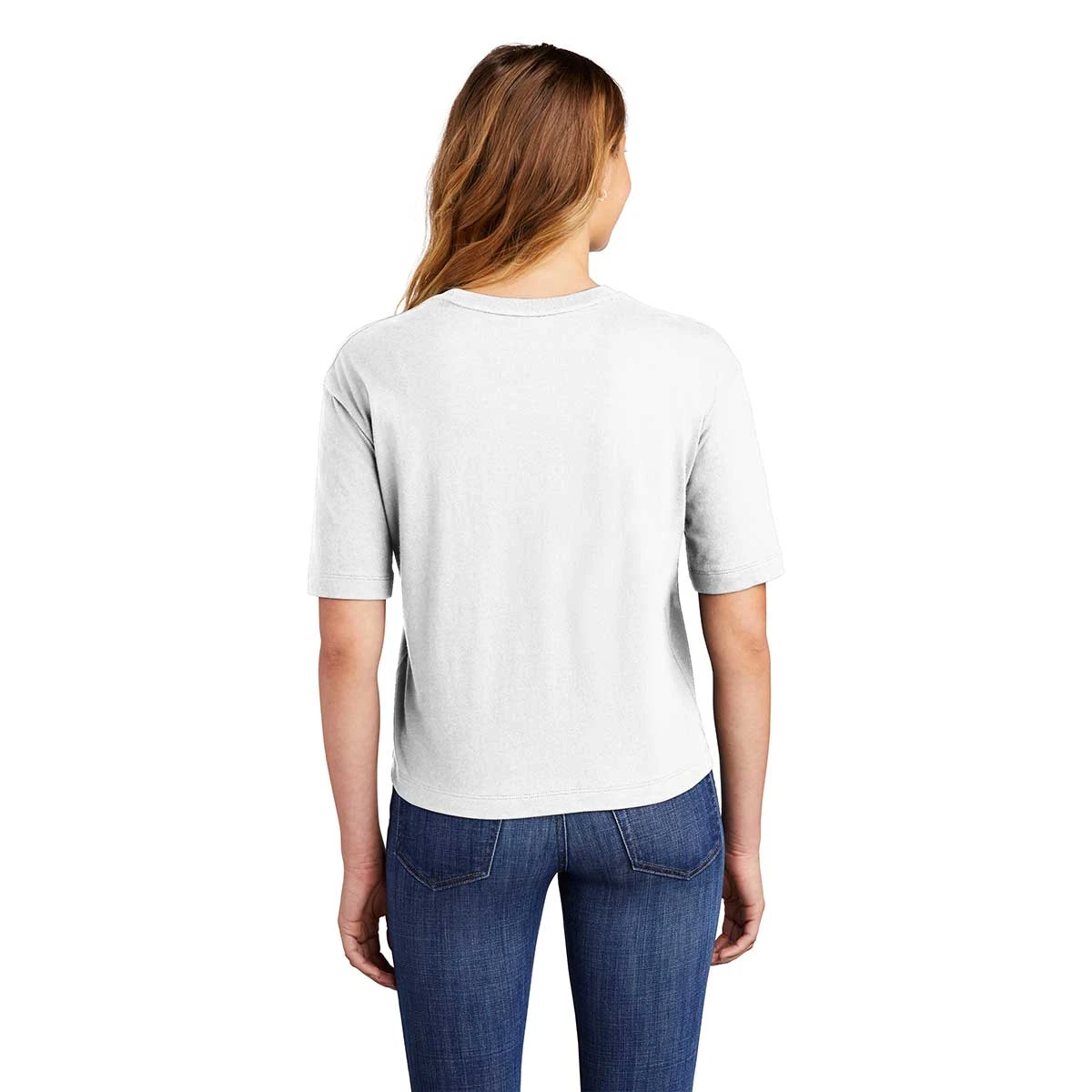 Be bold in a screen print District Women’s White V.I.T. Boxy Tee. The perfect custom tee to dress up or down depending on your needs, this 100% combed ring spun cotton, will carry your company logo with pride. Layer under a jacket or add a custom design to use this for a team event. The straight, boxier fit offers longer sleeves than the typical tee and a rib knit neck with tear away label. Whether you want to grab a favorite pair of jeans and spend the day with family or use this tee as part of a company uniform, this tee will deliver.