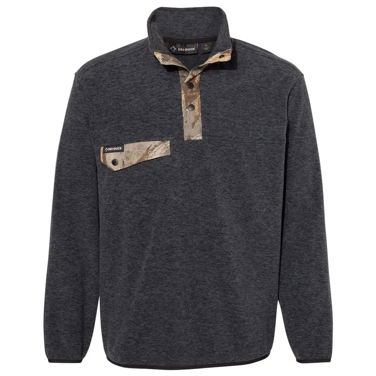 Choose your embroidery for the Dri Duck Men’s Charcoal Realtree Xtra Denali Mountain Fleece Pullover to use as corporate apparel or part of uniforms for workers. The 100% polyester melange Heather Mountain Fleece is soft, versatile, and durable. The anti-pill exterior and interior ensures longevity of wear and an anti-static finish keeps you looking sharp as you work, commute, and meet with friends. A chest pocket with snap closure keeps small items close at hand and UPF 50+ sun protection protects you even further. Place an order today to make sure these are part of your apparel line as soon as possible.