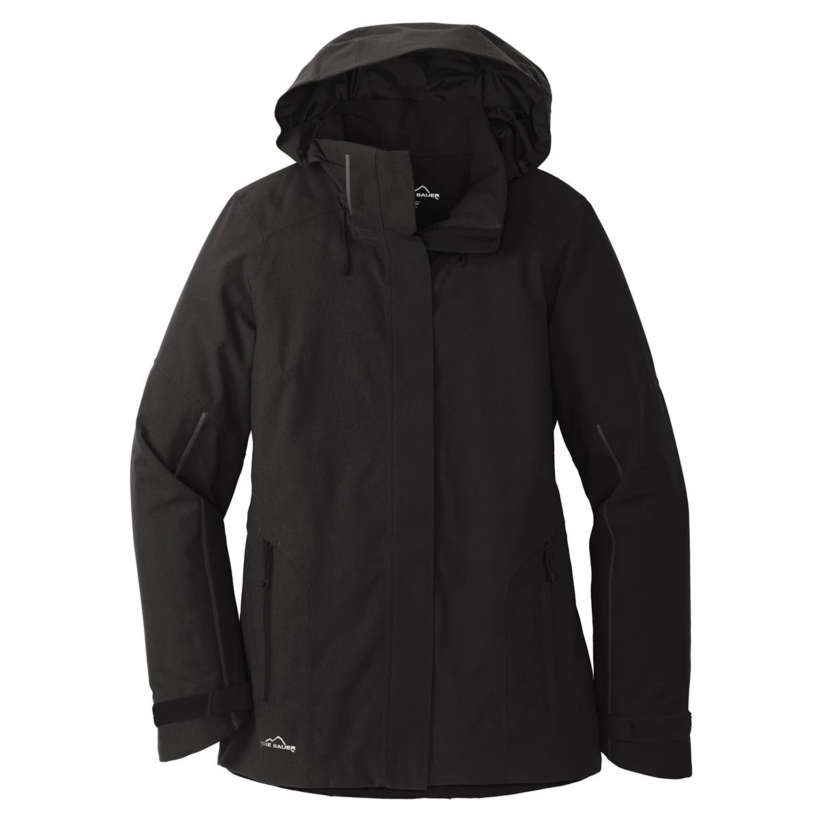 Manufactured to outlast the worst weather, the embroidered Eddie Bauer Women’s Black WeatherEdge Plus Insulated Jacket gives you the edge over Mother Nature. The fully seam-sealed technical jacket scores high on the waterproof and breathability scales. Trademarked WeatherEdge technology includes proprietary Storm-Repel water repellent to add an additional layer of protection against harsh weather. Fully insulated to keep you warm, the ladies jacket comes with an interior pocket to store electronic devices. All of this adds up to a jacket that keeps you warm and comfortable all day long. Attach a custom logo on the large imprint area to spread the word about your products and services at industry trade shows.