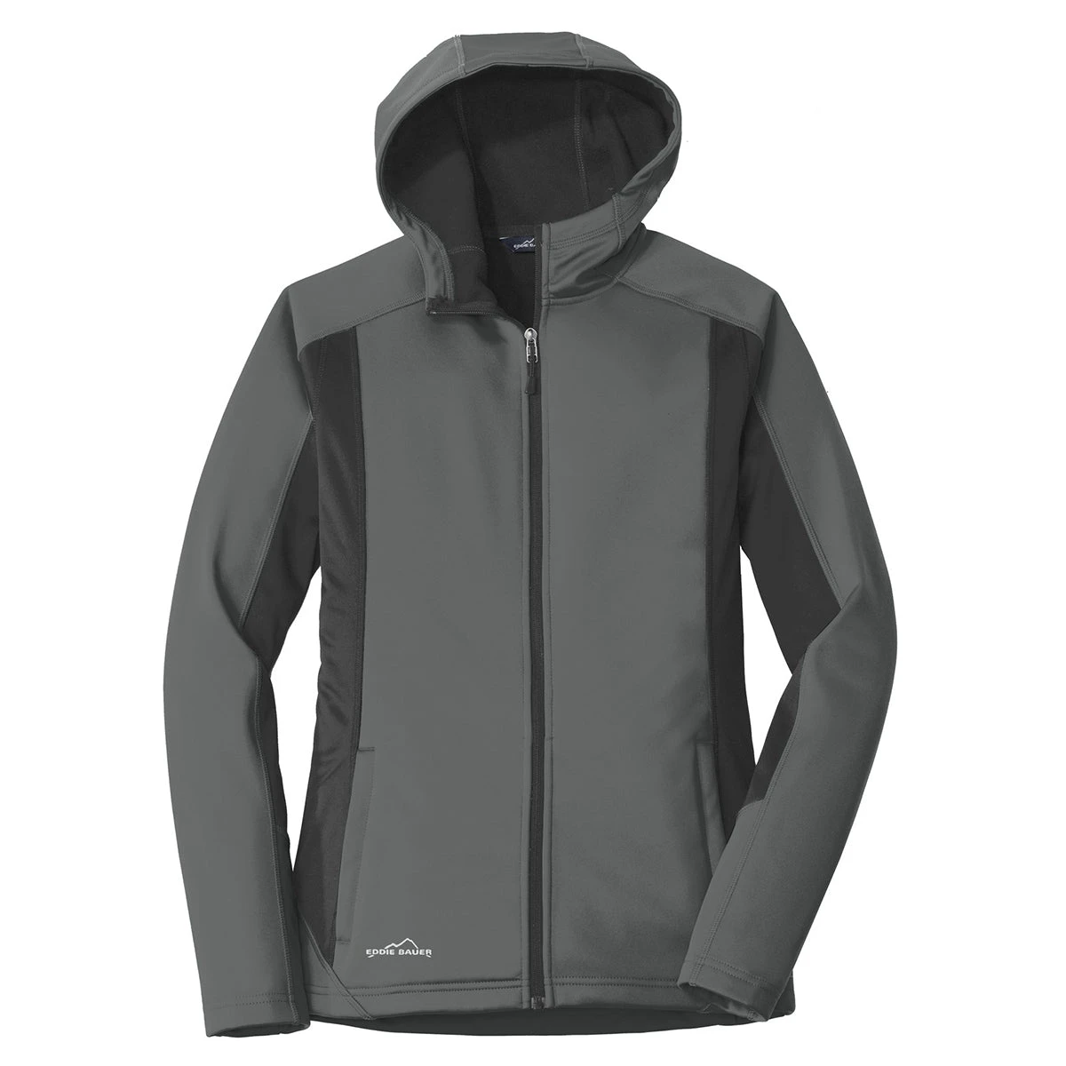 Give the logoed Eddie Bauer Women’s Metal Grey/Grey Steel Trail Soft Shell Jacket to each member of your successful team. The sleek embroidered corporate gift includes a large imprint area to attach your corporate logo. Designed with 100% rugged polyester knit shell and DWR coating, the jacket also receives a water-resistant laminated film to prevent Mother Nature from dampening your day. The micro fleece brushed interior feels smooth to keep you feeling fresh all-day long. Attach the hood to bundle up when the weather takes a turn for the worse. Your team will appreciate having a jacket that they actually want to wear both to the office and after hours.
