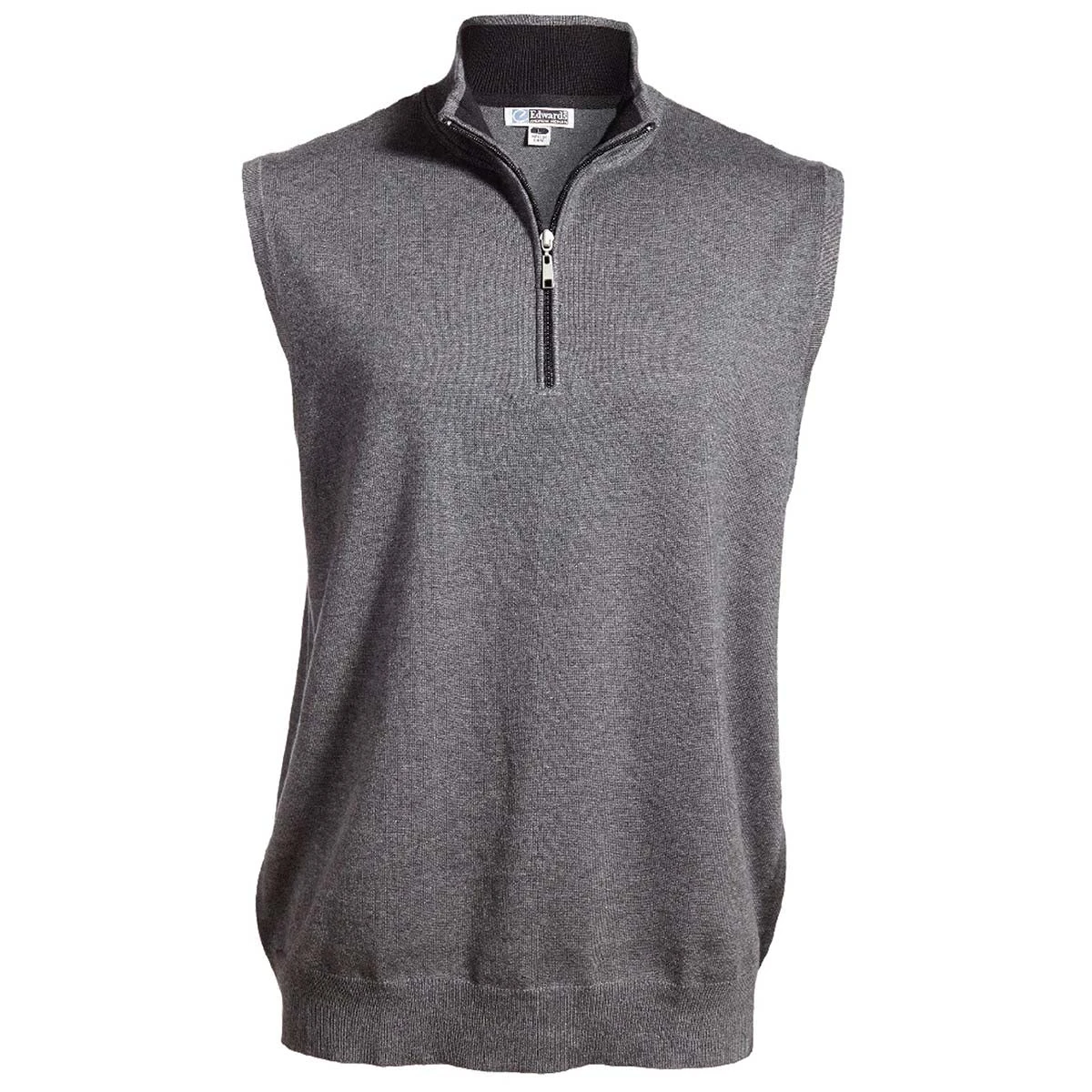 A custom look is easy to create with the Edwards Men’s Smoke Heather Quarter Zip Fine Gauge Sweater Vest. Add a corporate embroidery to use these pullovers as part of employee apparel or even hospitality apparel for those who need to greet others outdoors when the weather is cool. Made of a cotton rich, acrylic, and nylon blend, this lightweight pullover sweater vest is breathable with a traditional fit. Rib knit collar and bottom hem mean true durability. Add a company logo to use these for trade shows or other big events as promotional items.