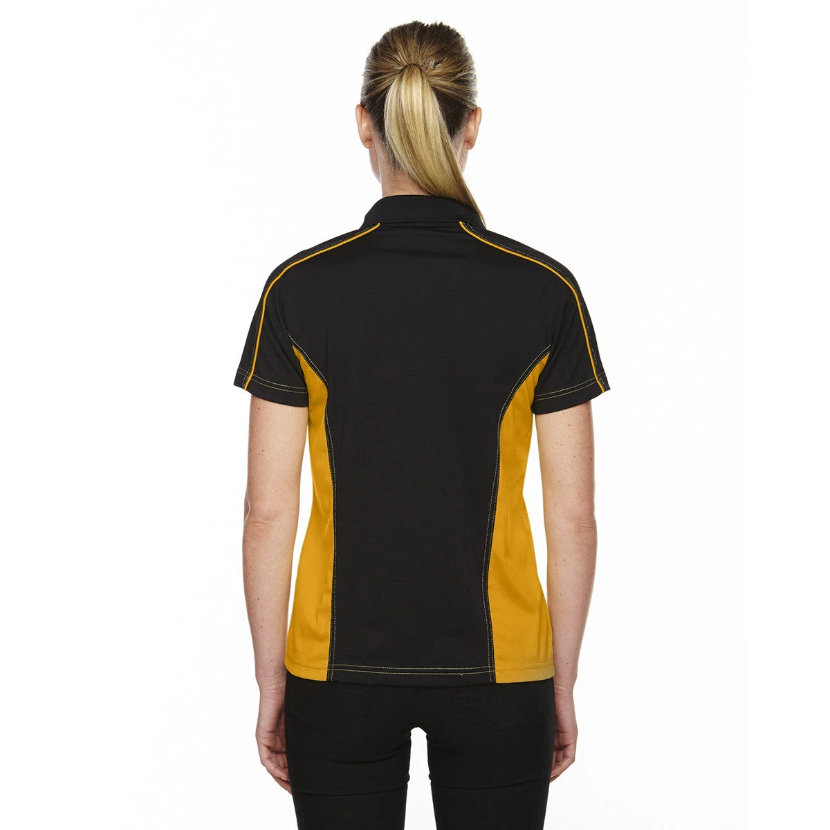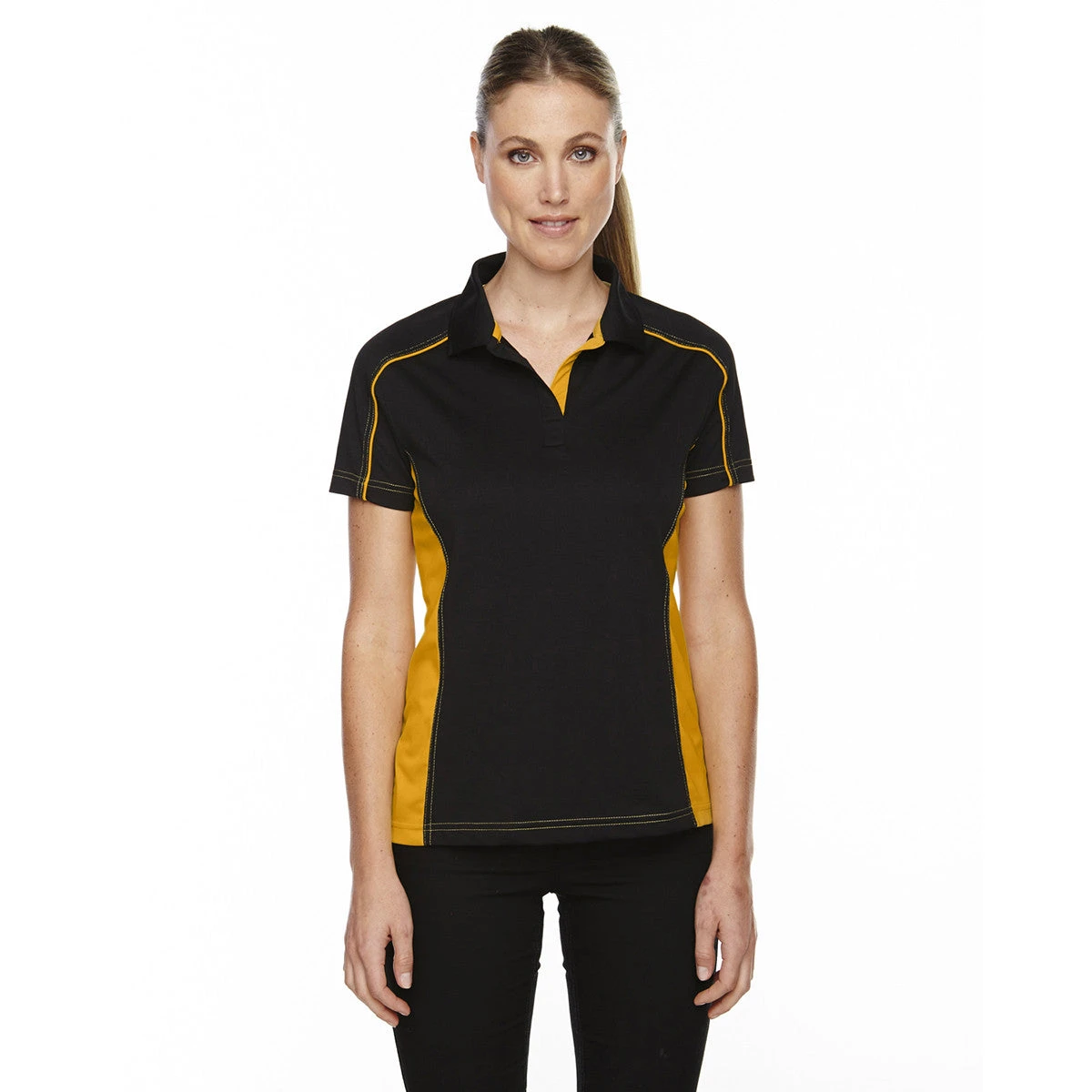 Wear the Extreme Women’s Black/Campus Gold Eperformance Fuse Snag Protection Plus Colorblock Polo to show off the unique one-button placket. The self fabric collar works well with the placket to create a fashion statement your team of high achievers will enjoy. Highly decorative stitching and contrast shoulder inserts complete the style elements that make the polo turn heads at business seminars and conferences. Moisture wicking technology quickly removes sweat to ensure supreme comfort throughout the day. Ultraviolet ray protection prevents harmful sunlight from damaging your skin. Add your company logo on the large imprint area to increase recognition of your brand.