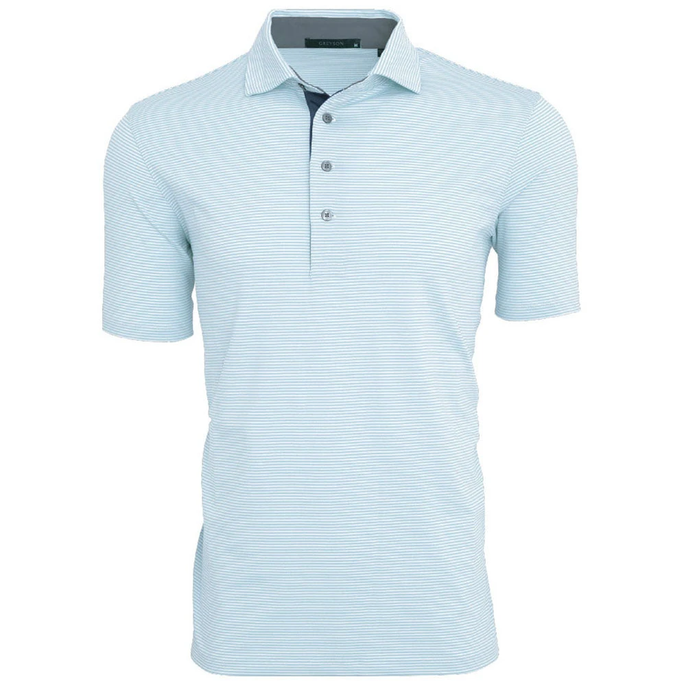 The custom logo Greyson Men’s Wolf Blue Saranac Polo offers stylish comfort in an easy-to-distribute promotional product. Get the word out on your company name by wearing this product at upcoming corporate events, such as trade shows or recruiting events.