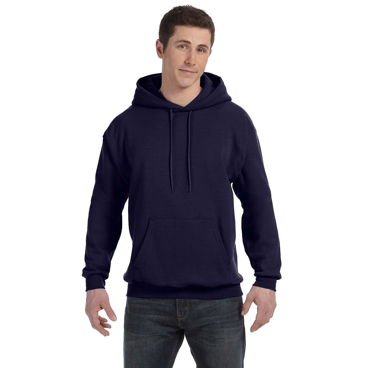 A custom hoodie is on everyone’s must have list and the Hanes Men’s Navy 7.8 oz. EcoSmart 50/50 Pullover Hood is no exception. Add your custom screen print to this eco-friendly hoodie with a tag-free neck and two-ply hood to give away at your next recruiting event. Ideal as employee apparel for those who need to brave the great outdoors, the large front pouch pocket means you can have all you need at an arm’s length. Choose from 25 available colors to find what best compliments your company logo and then place an order before the next scheduled event.