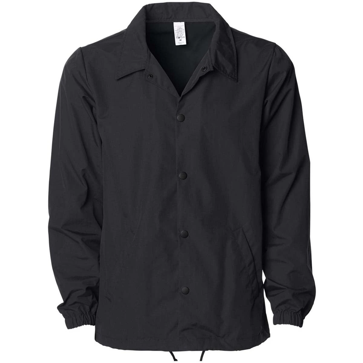 Take the lead in a custom embroidered Independent Trading Co. Men’s Black/Black Water Resistant Windbreaker Coaches Jacket . Available in a range of classic colors the 100% nylon 33D waterproof coating has an inner PU coating with a breathability of 5,000. With no ling, this lightweight jacket can be customized with your company logo to use as part of employee apparel or uniform or given as employee gifts at a special occasion. The elastic cuffs, underarm grommets, and drawstring closure add to the overall look. Place an order for a few or an entire box while supplies last.