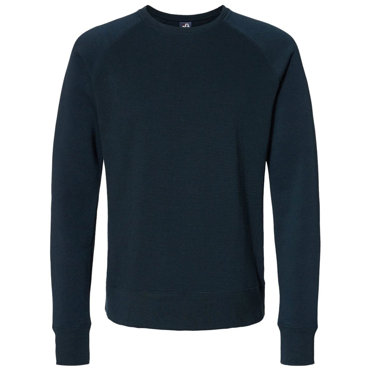 Choose screen print for the J. America Men’s Navy Ripple Fleece Raglan Crewneck Sweatshirtfor a comfortable, yet functional piece to add to your logoed apparel selection. Add a custom logo to the cotton polyester knit ottoman fleece blend with double knit stitching throughout. Horizontal stripe texture throughout adds a bit of extra to this crewneck sweatshirt with tearaway label. An excellent and simple employee gift with a company logo that everyone can enjoy, this is a must have.