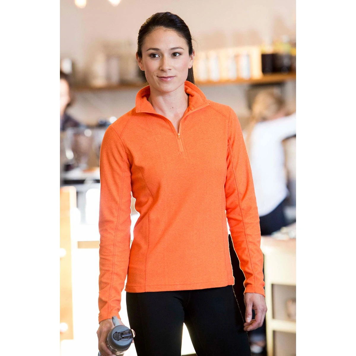 Make the custom logoed Landway Women’s Light Orange Terramo Textured Fleece Pullover the company gift that never stops giving by rewarding the hard working female members of your corporate team. The classic fit presents a professional image that gets you noticed at business seminars. Turn the notice into sales by attaching your corporate logo on the large imprint area. Premium anti-pilling heathered fleece exudes panache and the open cuffs seal the high-end fashion deal. Wear the multi-purpose fleece pullover as an outer layer on cool spring mornings that quickly change to warm afternoons.