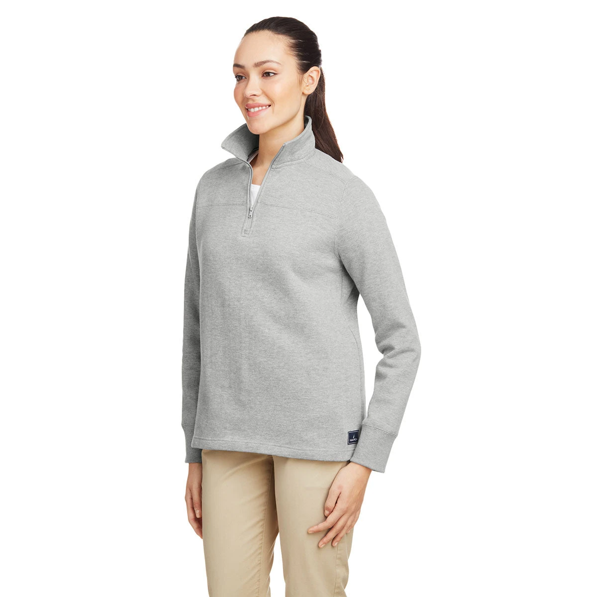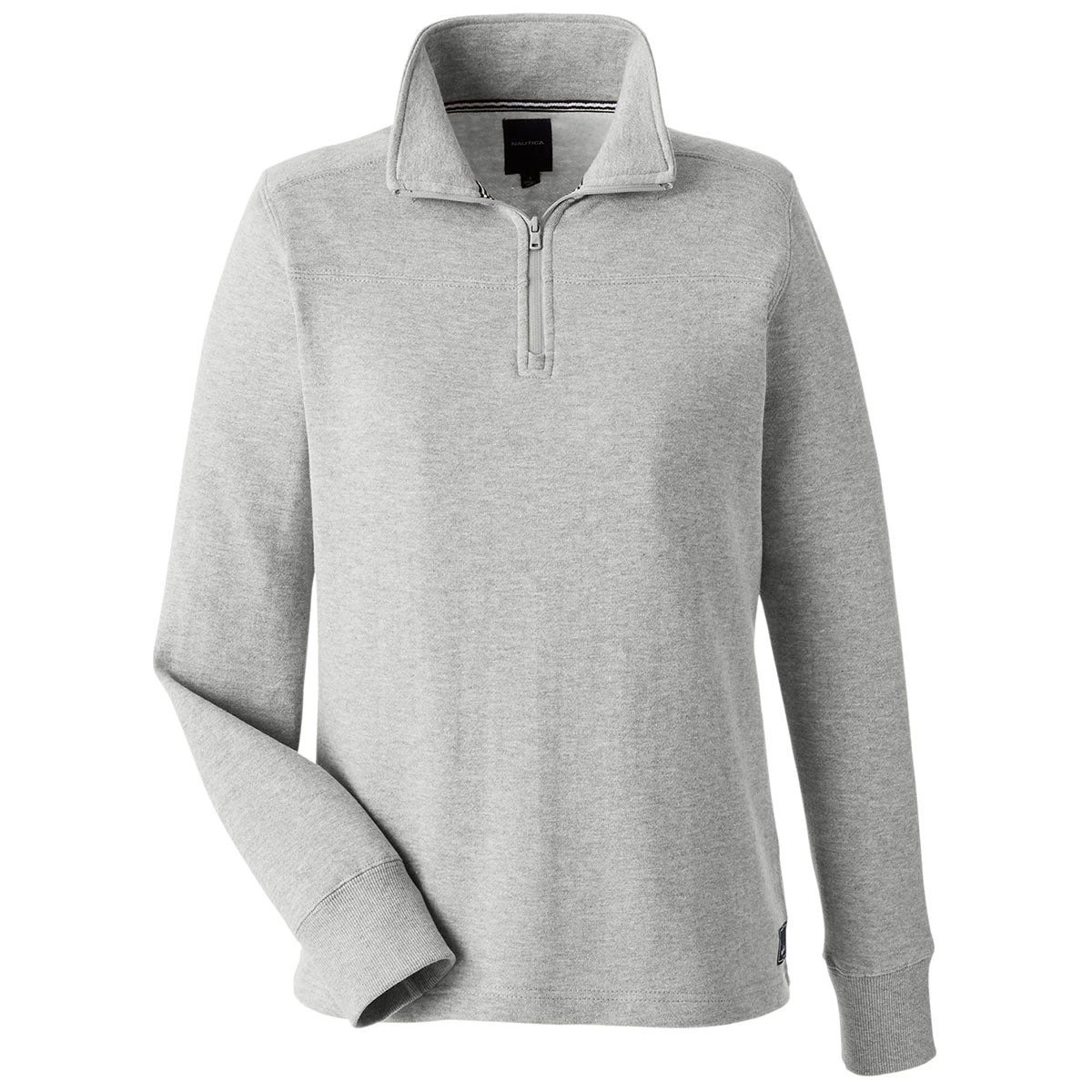 Choose a special embroidery for the Nautica Women’s Oxford Anchor Quarter-Zip Pullover to use as personal wear or employee apparel for the cooler months. A simple quarter-zip that can be worn over almost anything, this cotton polyester fleece blend is soft and comfortable for all day wear. Add a company logo or something custom to create a look unique to your logoed apparel line or to add to your personal wardrobe. Ribbed cuffs and hem offer a better fit whether practicing on the driving range or out hiking with friends.