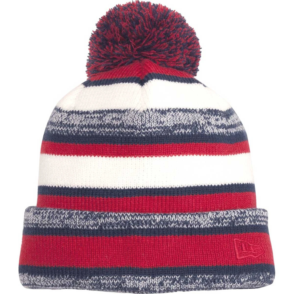 Don’t sit on the sidelines when it’s time to make a strong fashion statement at an outdoor athletic competition. Wear the sleek New Era Red/Navy Sideline Beanie and expect people to come and ask, “Where did you get that beanie.” With multiple colored heather stripes that evoke fond memories of winter, the beanie contains a polyester fleece lining that keeps your ears warm. The 100% acrylic shell handles everything Old Man Winter dishes out, including sleet pellets and wet, heavy snow. Attach your corporate logo to the beanie to let everyone know that your company stands for quality and innovation.