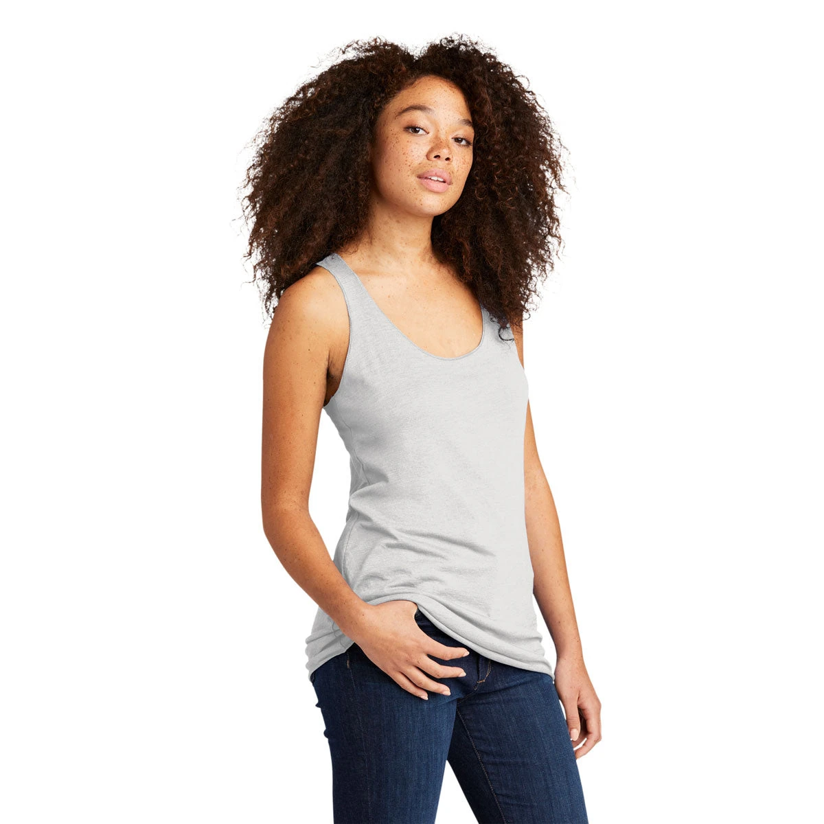 Add a custom logo to the Next Level Women’s Heather White Tri-Blend Racerback Tank for a look that can go from home to the beach to the gym with ease. This simple, lightweight poly, cotton, and rayon blend has a flatlock finished neck, hem, and armholes for a raw edged look. The fitted tank is great for working out or simply beating the summer heat. Try out a company logo to give as employee gifts for outdoor events or just to enjoy on days off. A company logo could also work for employee apparel for certain businesses. The racerback tank is easy to layer or wear alone depending on your da activities.