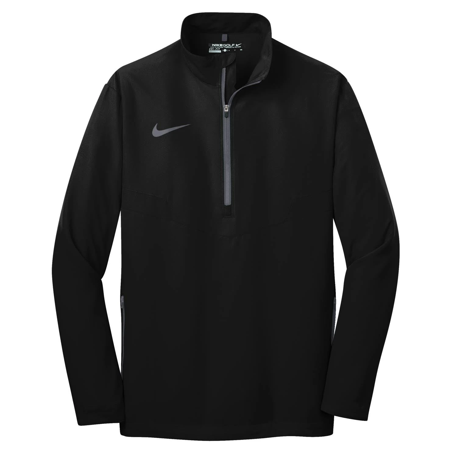 Golfing isn’t just a summer sport. The Nike Men’s Black Dri-FIT Long Sleeve Half Zip Wind Shirt is designed with the chilly, breezy days in mind, including a streamlined design that is lightweight and very comfortable. The Nike Golf Men’s Black Dri-FIT Long Sleeve Half Zip Wind Shirt is a high performance outerwear piece that will fight the wind so that you can concentrate on your game. It features zippered pockets, adjustable cuffs, a drawcord hem and a Swoosh trademark design on the right chest.