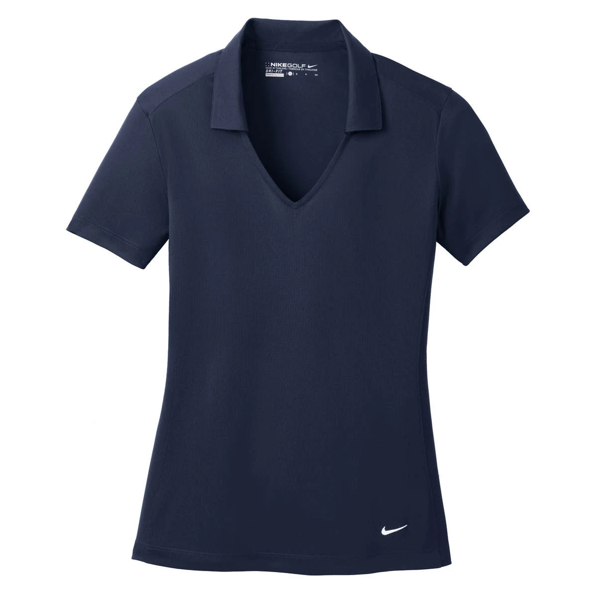 What should you except from a golf polo? Most people look for a collar and call it a day. But you’re not most people. You expect more out of your polo. You expect lightweight 100% polyester fabric that’s as durable as it is comfortable. You expect moisture management technology that keeps the sweat at bay. You expect a feminine fit with a Johnny collar for the most possible style. In short, you expect a polo of the quality of this Nike Women’s Marine Dri-FIT Short Sleeve Vertical Mesh Polo. And Nike Golf incorporates the same standards into its polo, while allowing the room on the chest for your own custom embroidery or business logo.