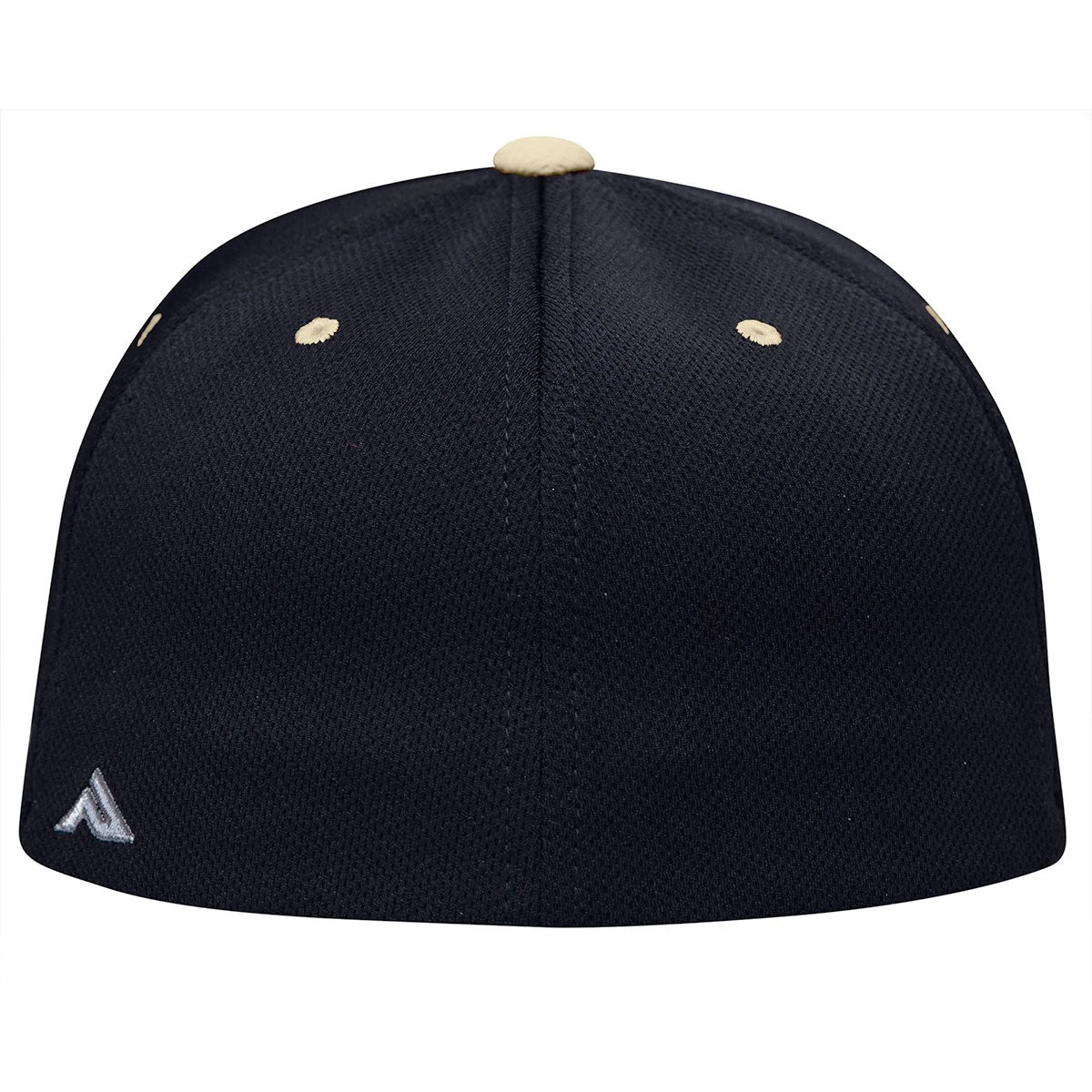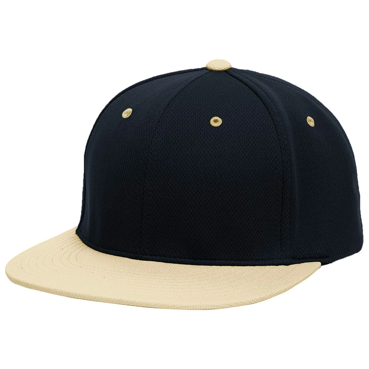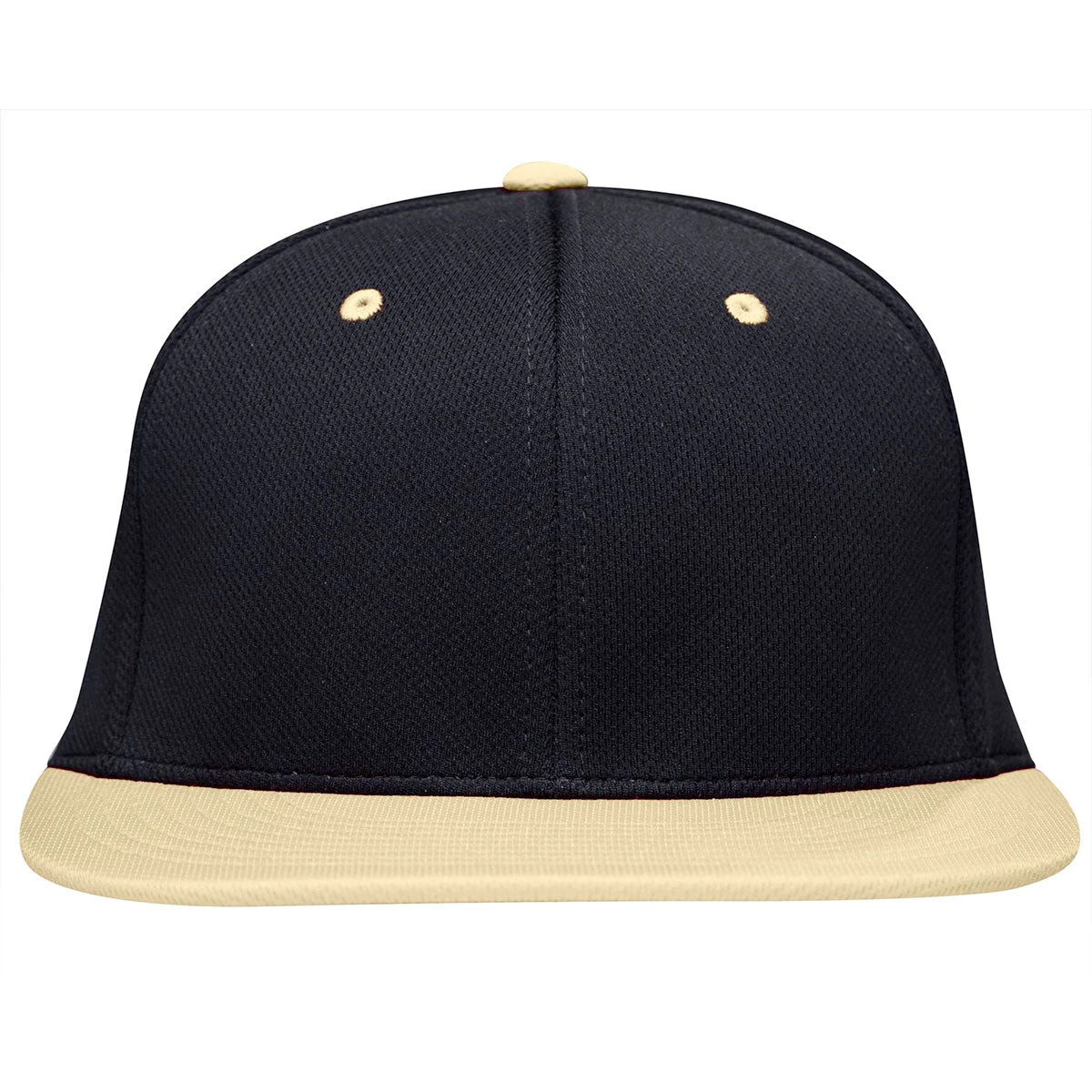 Turn heads with a custom embroidery Pacific Headwear Navy/Vegas Premium P-Tec FlexFit Cap made of performance fabric and completed with a pro-stitched finish. The base color is made bolder with contrast colored eyelets and flat visor. Add a company logo to use as part of employee apparel to get your employees noticed or give them as custom gifts to loyal customers. The graphite undervisor with shapeable visor conforms to what you want and moisture wicking makes it comfortable for all day wear, even in warmer environments. A closed back means this is a one size fits most design.