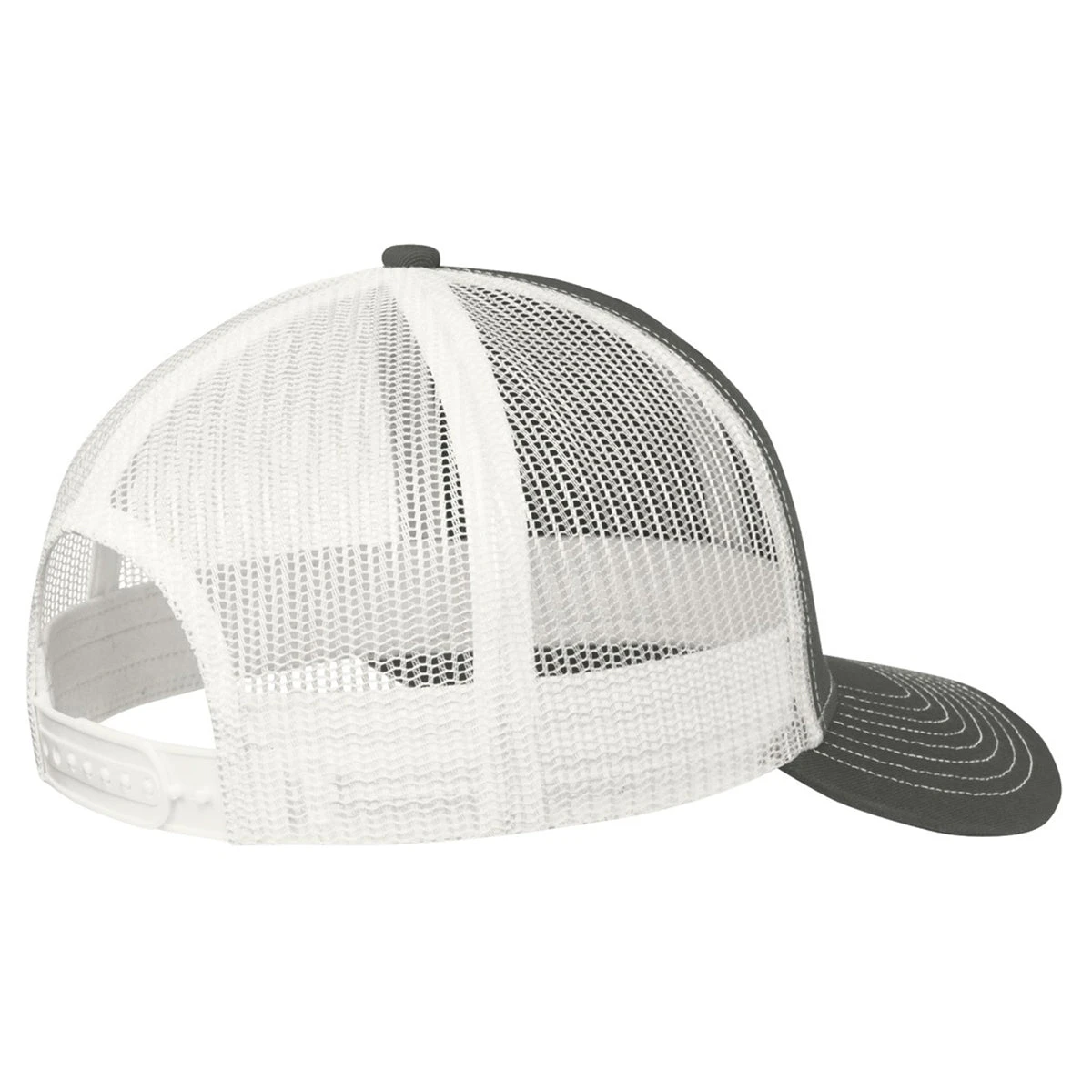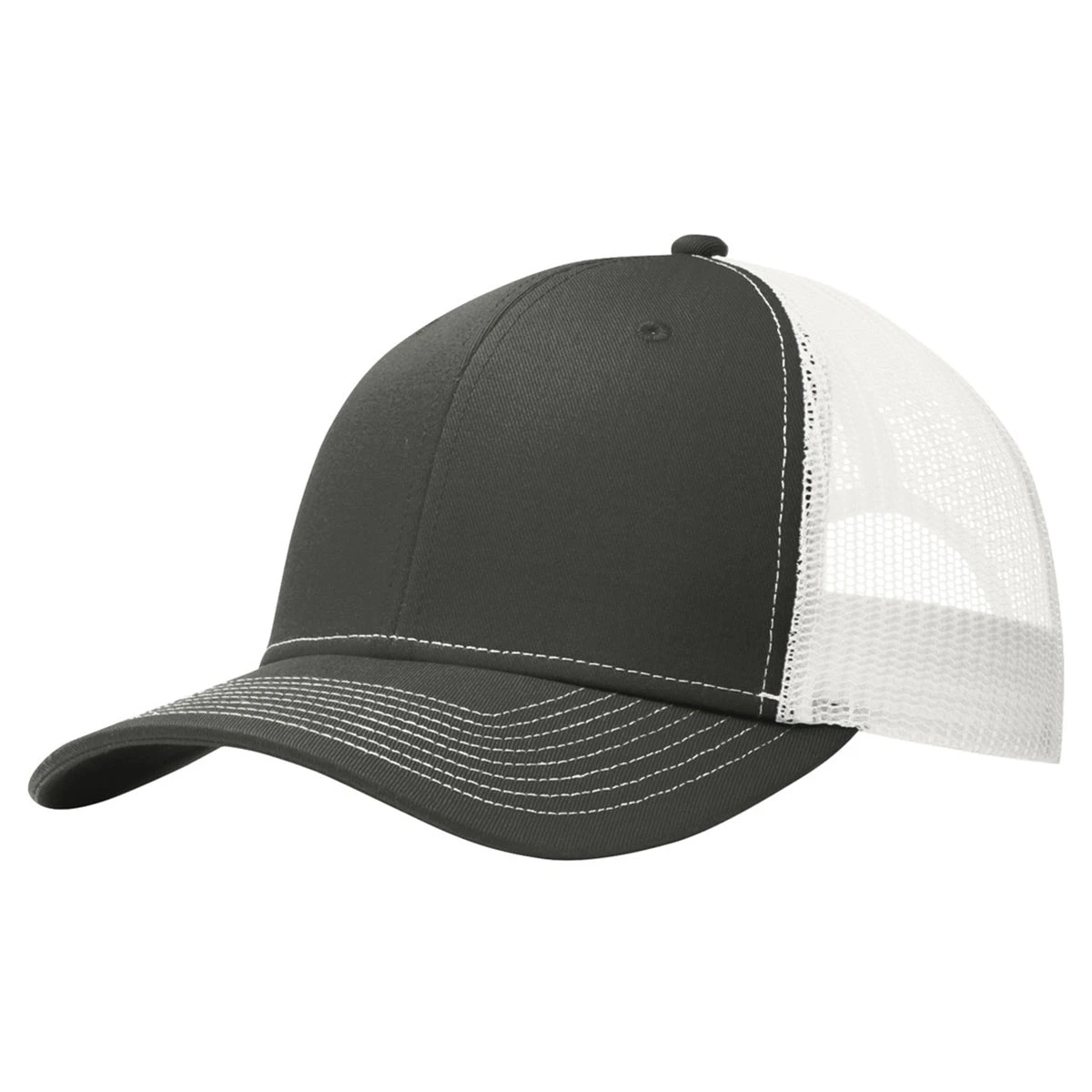 A classic style with a new and modern twist. The logoed Port Authority Grey Steel/White Snapback Trucker Cap is the perfect solution for your next corporate apparel purchase. The two-toned cap features breathable mesh that circulates air to keep your head comfortably cool under the most intense competitive pressure. Contrast stitching on the bill creates a stunning appearance that will draw rave reviews from everyone your meet at civic events. Turn the rave reviews into sales by attaching your custom logo on the large imprint area. The mid profile and structured design give you a refined look that lets your peers know you have everything under control.