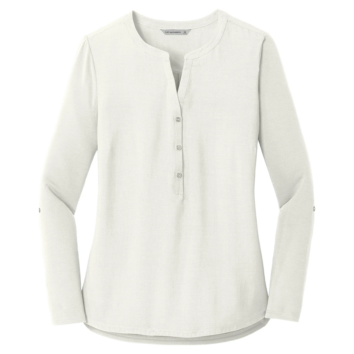 When it comes to casual professional apparel, nothing beats the stunning design of the logoed Port Authority Women’s Ivory Chiffon Concept Henley Tunic. The soft, flowing fabric presents a professional appearance because of the tightly woven front and back knit fabric. Polyester and rayon combine to resist the types of rips and tears that end the fashion usefulness of other styles of women’s corporate apparel. Port Authority custom designs the women’s Henley tunic tobe ready for anything your day has in store. Roll sleeves with stylish button tabs allow you to roll your sleeves up and get down to business. Add your company logo and watch awareness of your brand reach new heights.