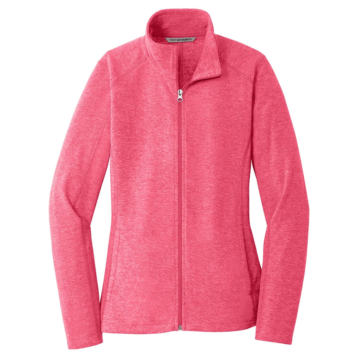 How can a jacket keep you comfortably warm and not cause aggravating perspiration to form on your body? Port Authority Women’s Pink Raspberry Heather Microfleece Full-Zip Jacket answers the question by containing 100% polyester microfleece that quickly wicks away sweat to cool your skin. Instead of having to take off the microfleece jacket whenever the temperature rises, you enjoy supreme comfort of the super soft fabric that includes an anti-pill finish. Rust resistant exposed coil zippers add style to an already fashionable jacket. Add a custom logo to the jacket for promotional purposes.