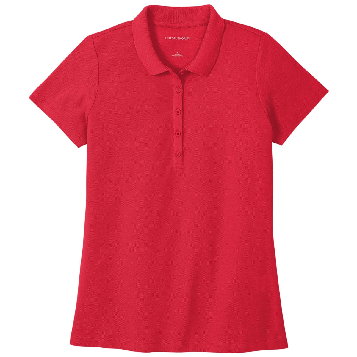 Design a custom embroidery for the Port Authority Women’s Rich Red SuperPro React Polo for a look that can go from the office to dinner with friends with complete ease. This classic uniform style meets performance wear in this poly cotton polo that is ready for anything life can bring. Add a company logo to create a corporate uniform that is comfortable and convenient with stain release, snag resistance, and Easy Care qualities. The flat knit collar with five button placket makes this polo easy to layer or wear alone. Enjoy a day with friends, at work, or anywhere you please and look great while doing it.