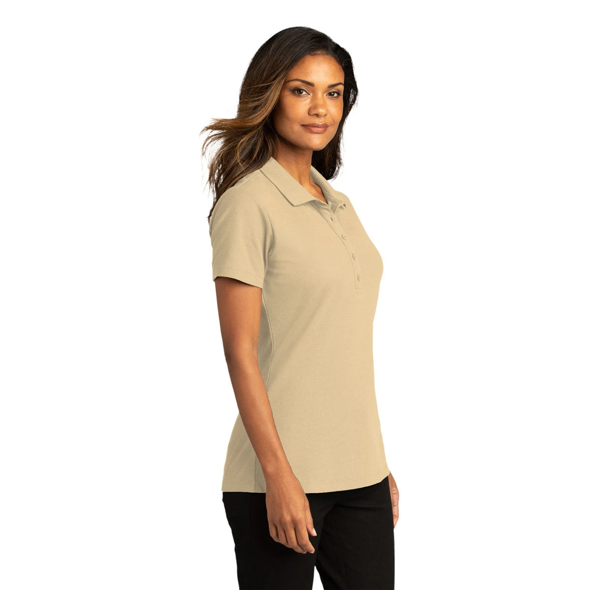Design a custom embroidery for the Port Authority Women’s Wheat SuperPro React Polo for a look that can go from the office to dinner with friends with complete ease. This classic uniform style meets performance wear in this poly cotton polo that is ready for anything life can bring. Add a company logo to create a corporate uniform that is comfortable and convenient with stain release, snag resistance, and Easy Care qualities. The flat knit collar with five button placket makes this polo easy to layer or wear alone. Enjoy a day with friends, at work, or anywhere you please and look great while doing it.