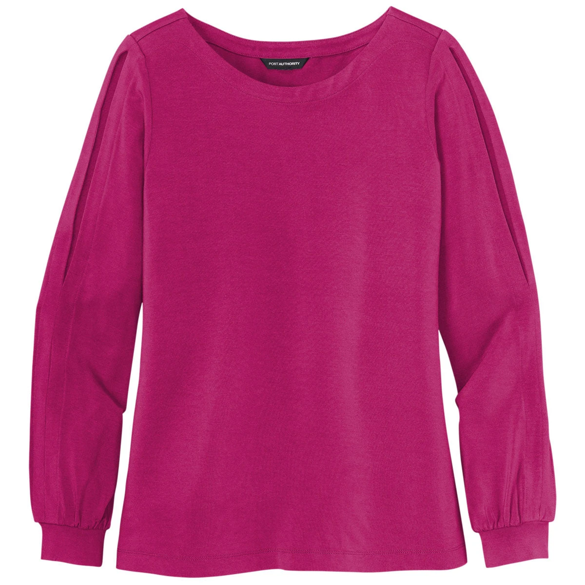 Be bold in the custom Port Authority Women’s Wild Berry Luxe Knit Jewel Neck Top. This modern look in an ultra-comfortable fabric creates a top that you will want to wear all year long. The machine washable rayon and spandex blend is light and airy for all day wear. Add a company logo to create high-end corporate apparel or employee apparel that will demonstrate the type of company you run. A jewel neckline with gathered cuffs and upper arm side openings add just enough flair to be truly fashionable. The relaxed fit allows for plenty of freedom of movement whether stocking shelves or closing a sale.