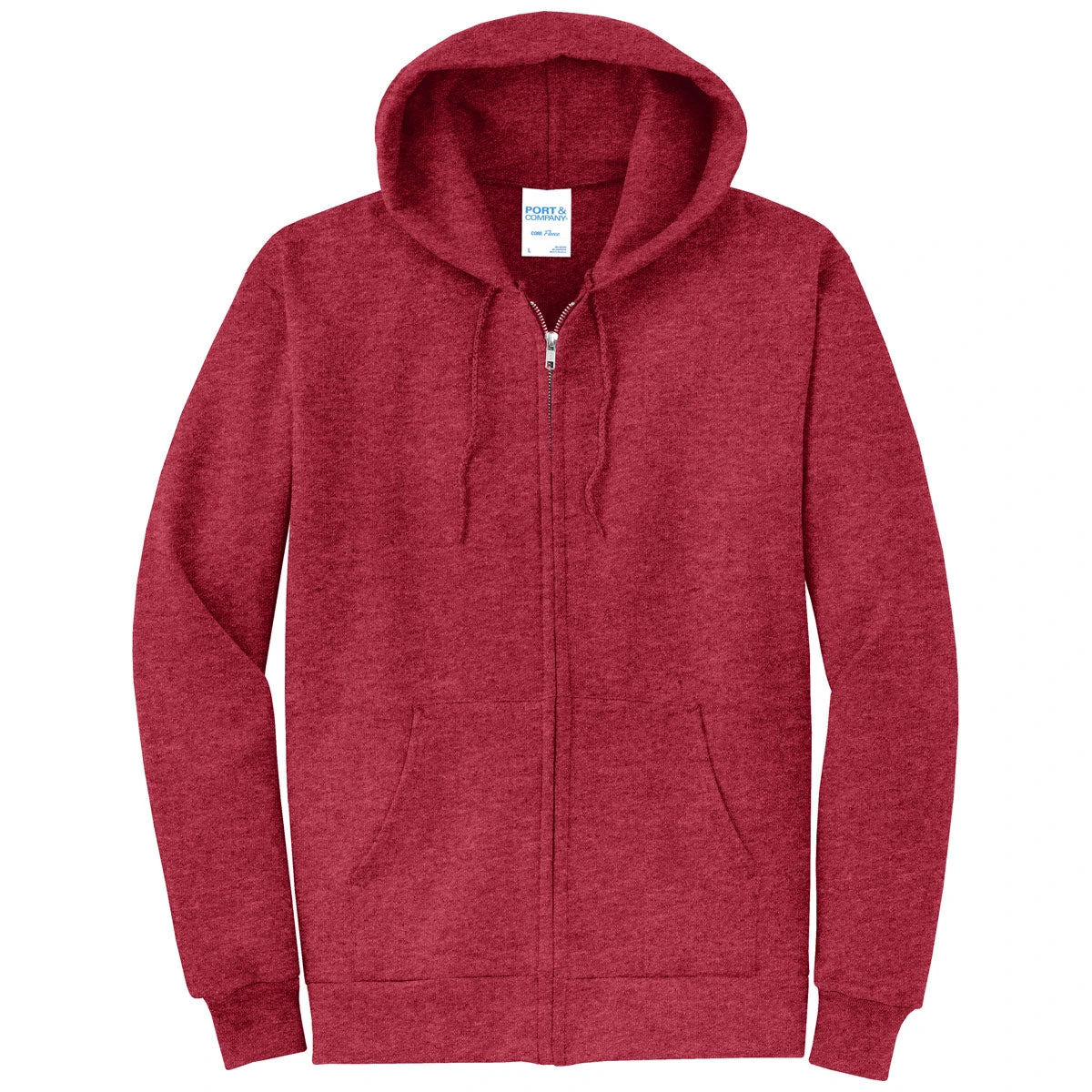 Port & Company Men’s Heather Red Core Fleece Full-Zip Hooded Sweatshirt