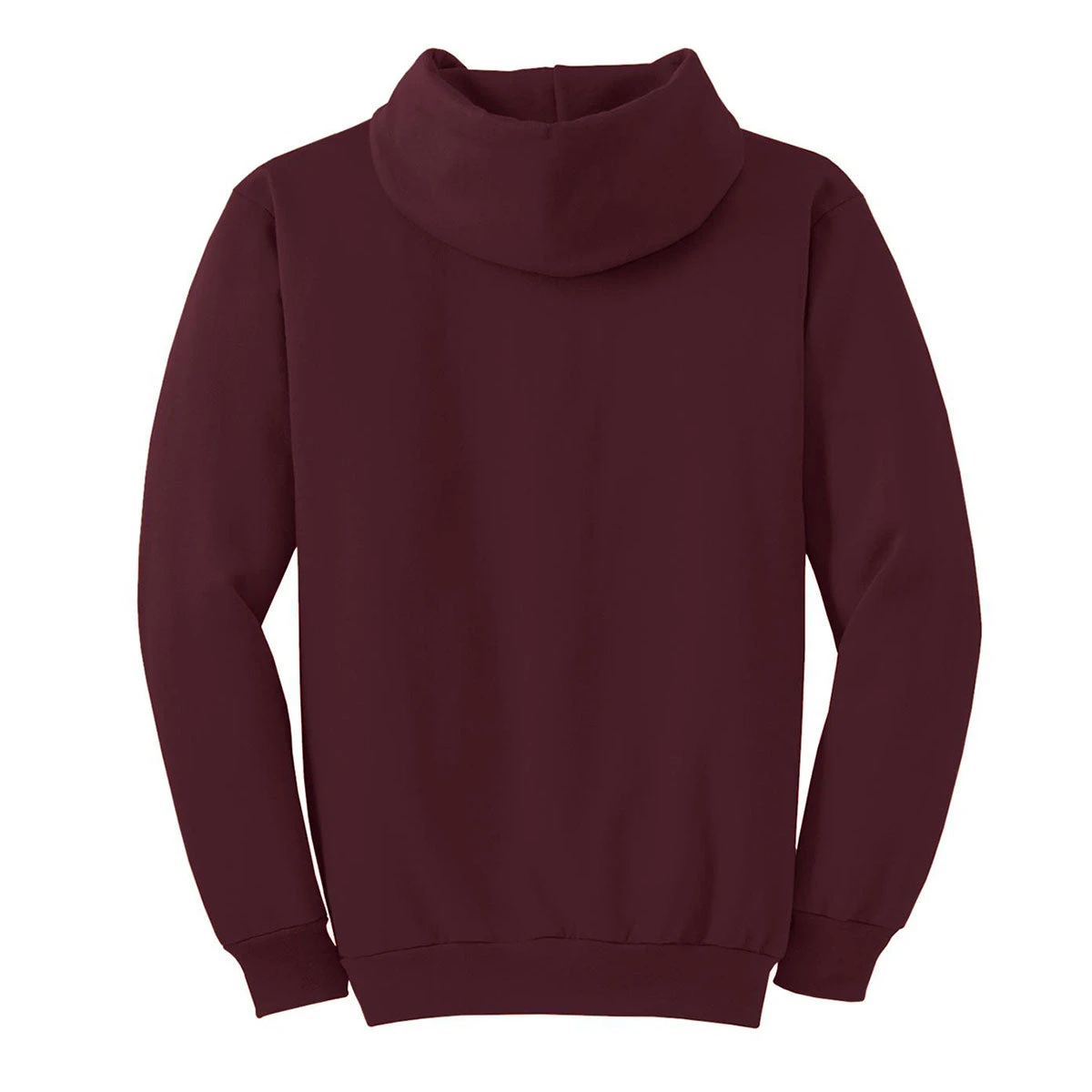 The printed Port & Company Men’s Maroon Essential Fleece Pullover Hooded Sweatshirt makes the perfect company uniform for the members of your dedicated company team. The lightweight fabric contains 50% super soft cotton that gently touches the skin to ensure you remain comfortable throughout every hectic day. Blended polyester resists the types of rips and tears that diminish the quality of other hooded sweatshirts. Add a custom logo to achieve marketing greatness when you travel for business. With a logo, you leave a lasting positive impression on everyone you meet at professional networking events. Your team will be happy to receive this comfortable and durable custom hoodie.