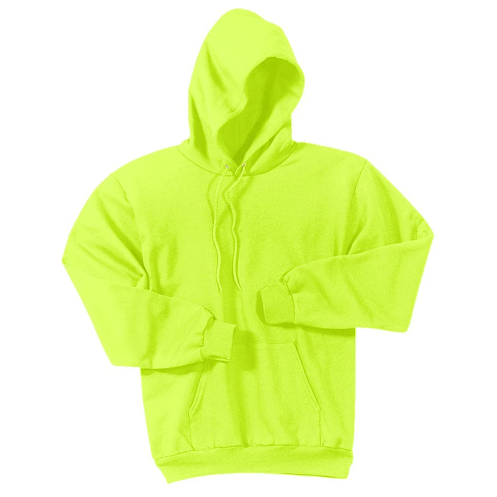 The printed Port & Company Men’s Safety Green Essential Fleece Pullover Hooded Sweatshirt makes the perfect company uniform for the members of your dedicated company team. The lightweight fabric contains 50% super soft cotton that gently touches the skin to ensure you remain comfortable throughout every hectic day. Blended polyester resists the types of rips and tears that diminish the quality of other hooded sweatshirts. Add a custom logo to achieve marketing greatness when you travel for business. With a logo, you leave a lasting positive impression on everyone you meet at professional networking events. Your team will be happy to receive this comfortable and durable custom hoodie.