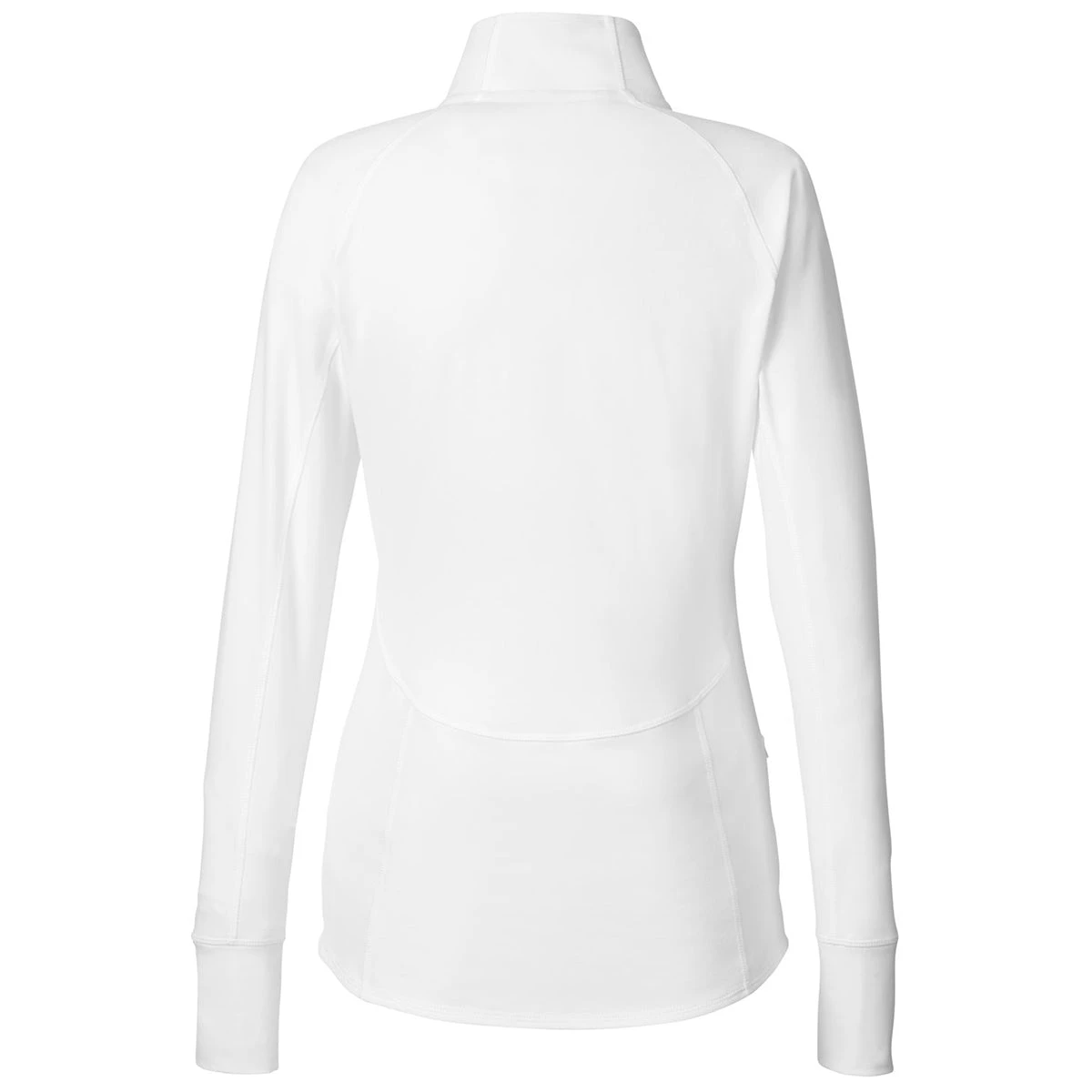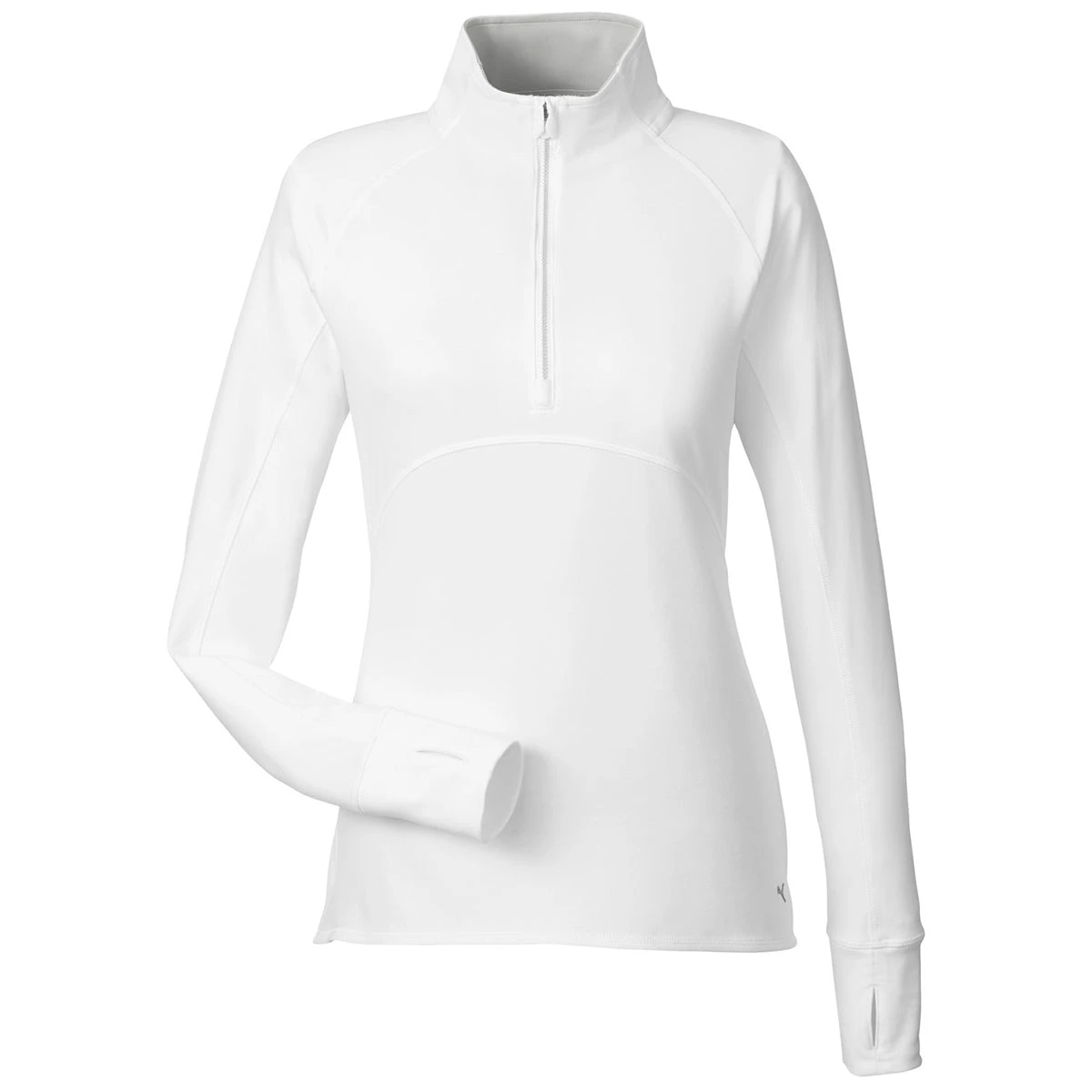 Embroidery will create a custom look with the Puma Golf Women’s Bright White Gamer Golf 1/4 Zip. The polyester and elastane fabric offers moisture wicking and UV resistance of 50+ for total comfort as you go about your day. Enjoy a fall day of teeing off or sip drinks with friends at the clubhouse while looking your best. Add a corporate logo to use as a uniform or gift for employees. Order today.