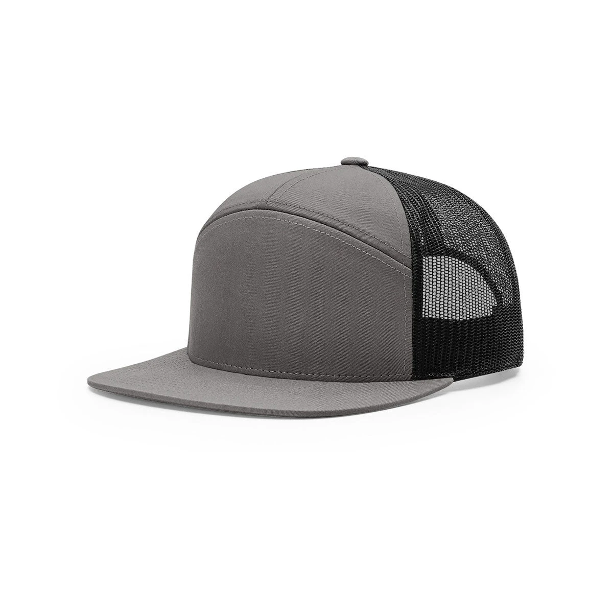An edgy spin on a classic style, the Richardson Charcoal/Black Mesh Back Split 7 Panel Trucker Hat offers seamless front panel ideal for all types of custom artwork personalization. It’s great for company baseball or softball team matches or to heighten brand’s corporate swag at fundraisers, trade shows and outdoor promotions. Trendy crown design of this trucker hat adds an effortlessly cool vibe to ensembles.