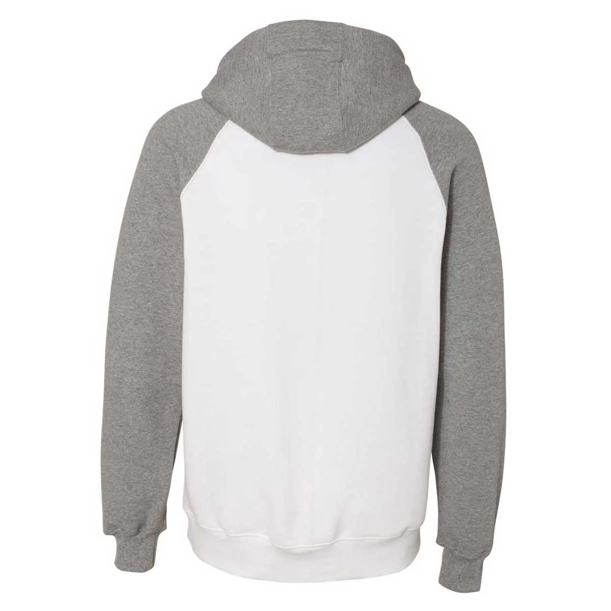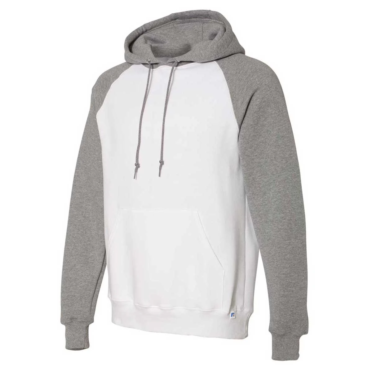 Stand out in screen print Russell Athletic Men’s White/Oxford Dri Power Colorblock Raglan Hooded Sweatshirt. This gorgeous hooded sweatshirt is fun and functional to wear alone or layer for colder days. The interesting colorblocking detail draws the eye as you enjoy this cotton polyester blend piece. Add a custom logo to promote an event or draw attention to a booth at a trade show. The colorblocking is found on the raglan sleeves, hood, and drawstring to create a fun look to enjoy while hanging out, playing sports, or working out alone.