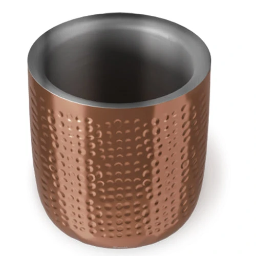 Elevate any entertaining space with the help of the 68oz Dipped Metallic Ice Bucket. Special Therma-SbwellB. Technology pairs with triple-layered, vacuum-insulated construction to create a condensation-free bucket that will keep ice colder for longer. It also features an attractive metallic exterior that will highlight your companybs custom logo.