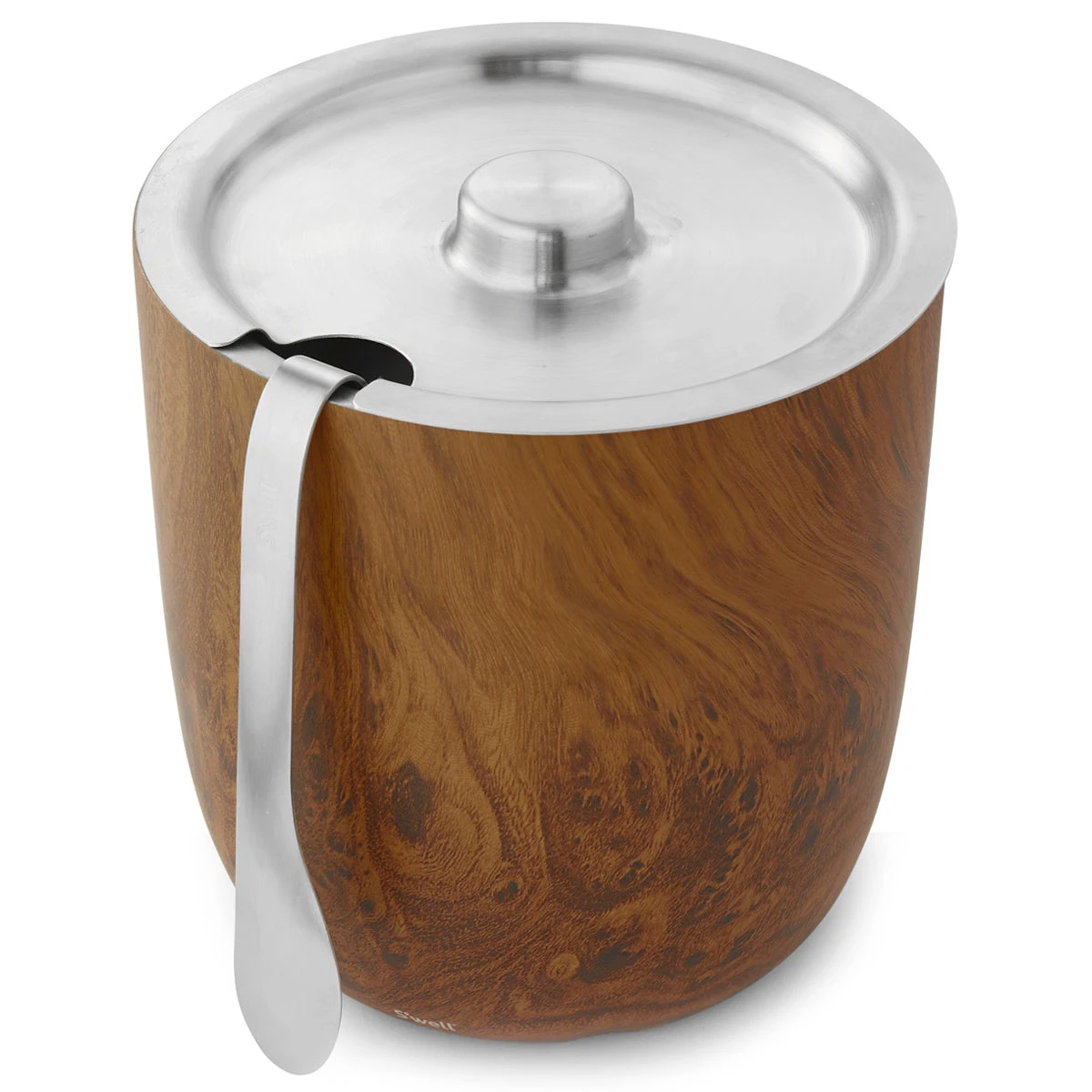 For an employee appreciation gift or customer giveaway that is sleek, stylish, and perfectly on-trend, add your companybs custom logo to the S’well Ice Bucket 68 oz. The stainless steel cover contrasts beautifully with the wooden matte finish, while Therma-SbwellB. Technology keeps your ice cold for hours at a time.B